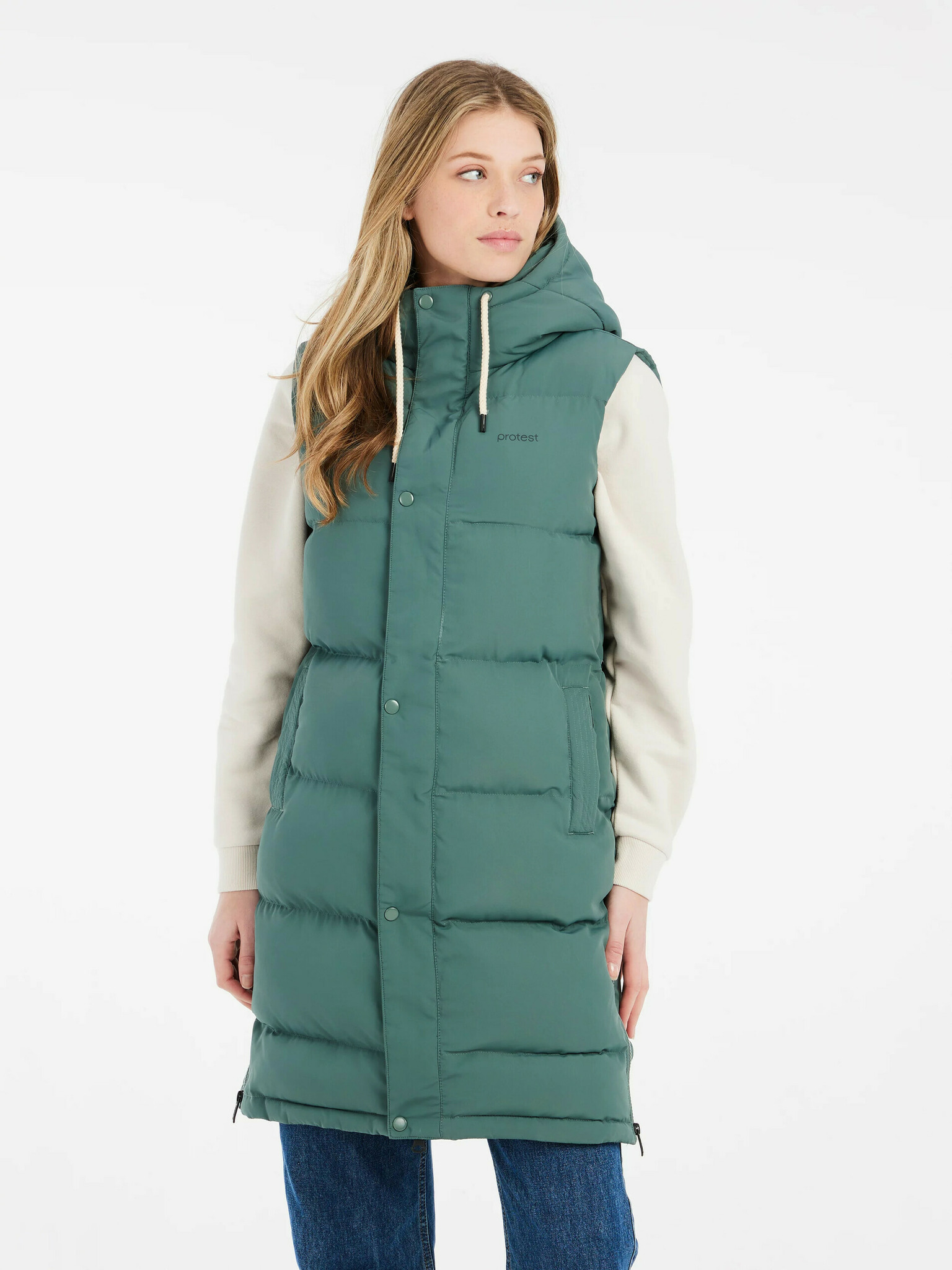Дамски дълъг ватиран елек в цвят каки ORSAY