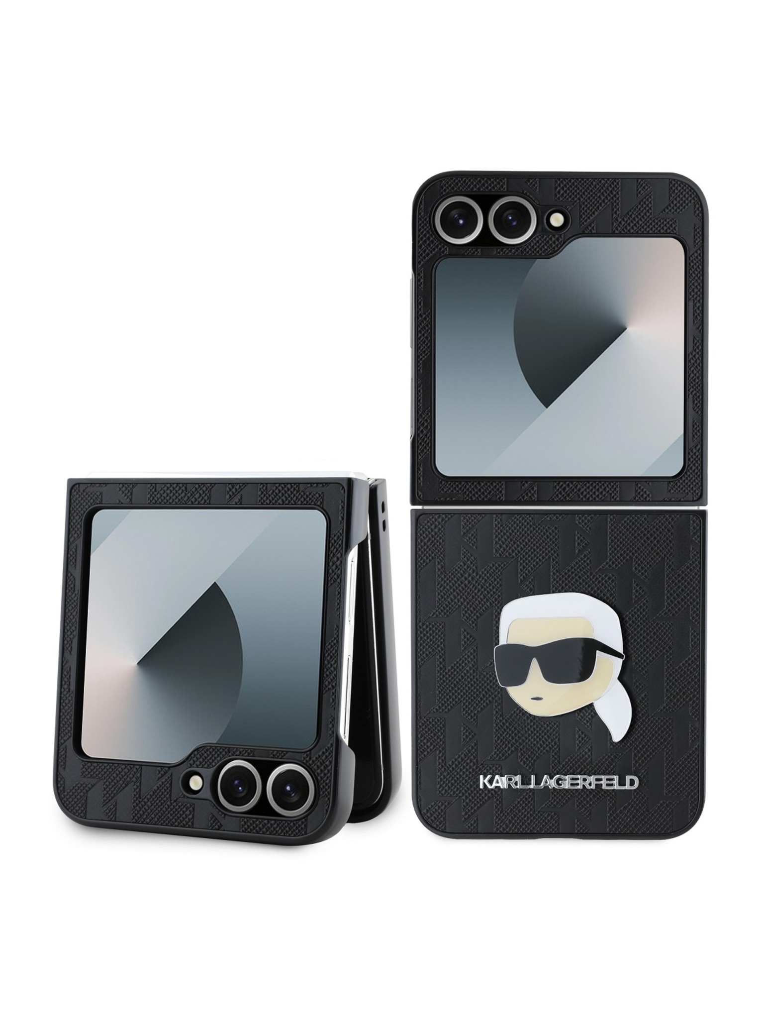 Karl Lagerfeld PU Сафиано Монограм Karl Head Заден Калъф за Samsung Galaxy Z Flip 6 Черен
