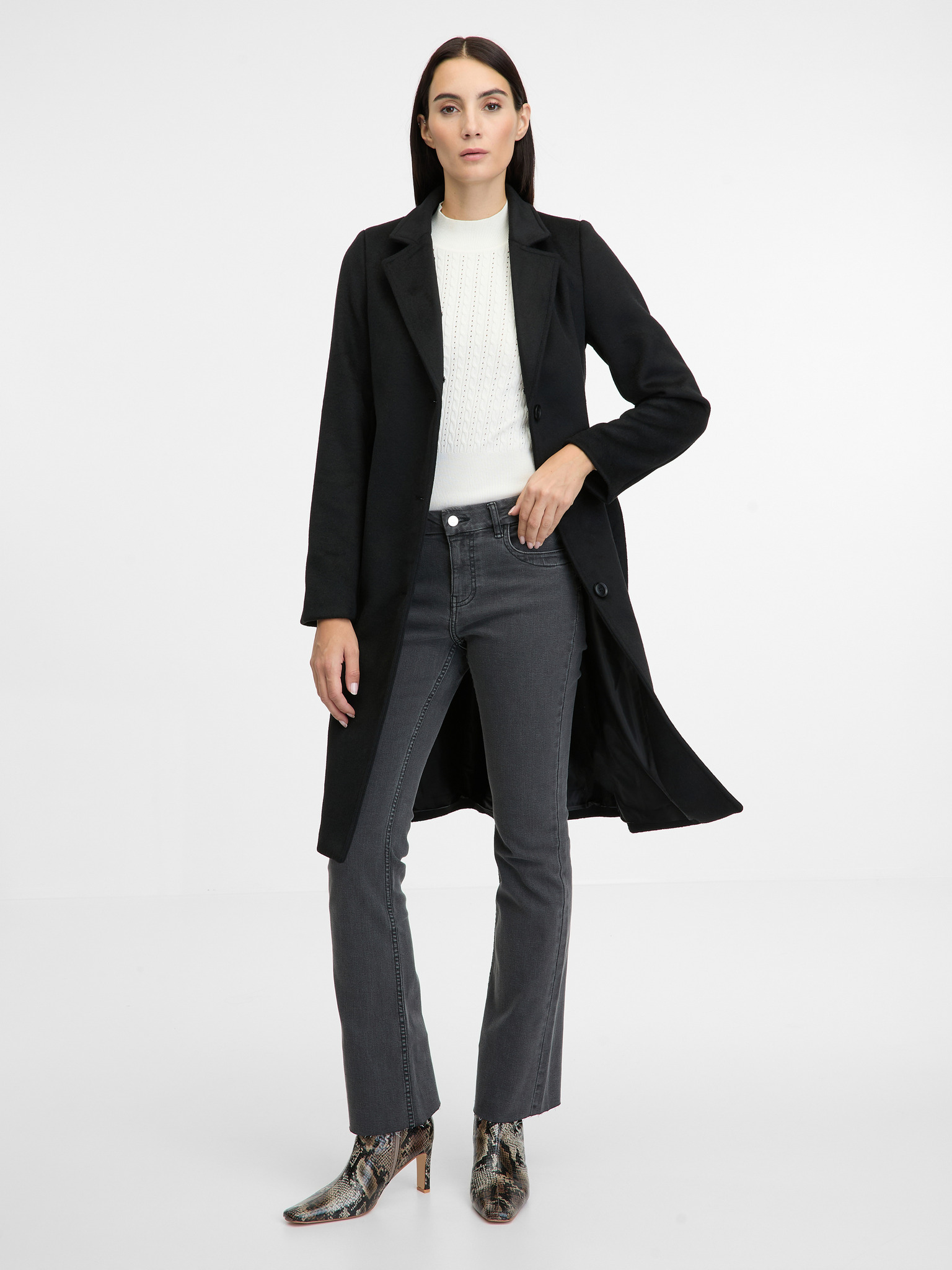 Черно дамско зимно палто с примес на вълна ORSAY