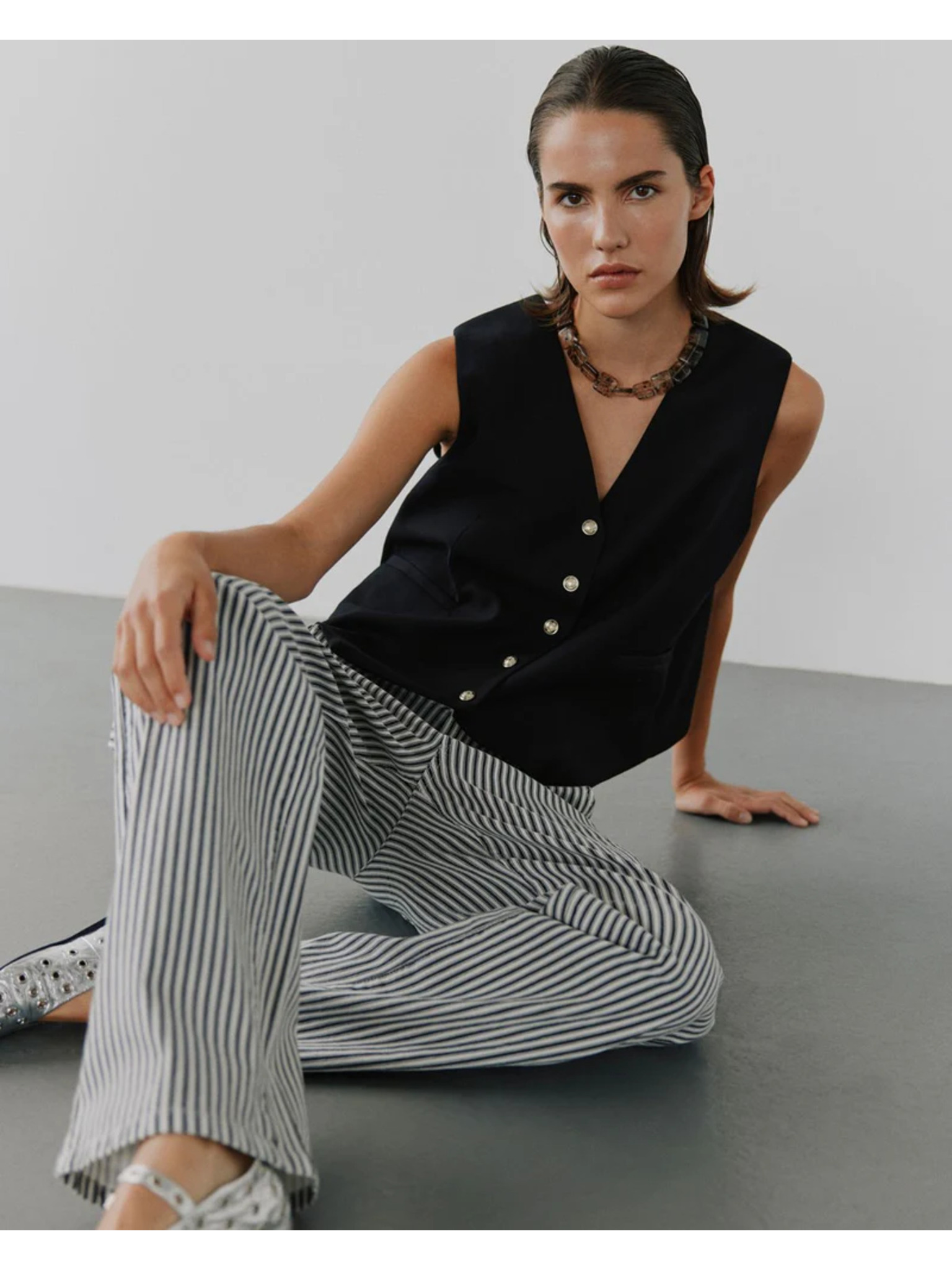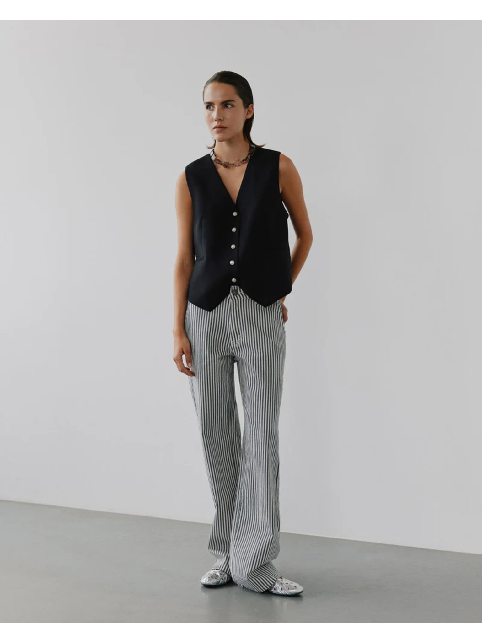 Бели и черни дамски раирани панталони Sofie Schnoor