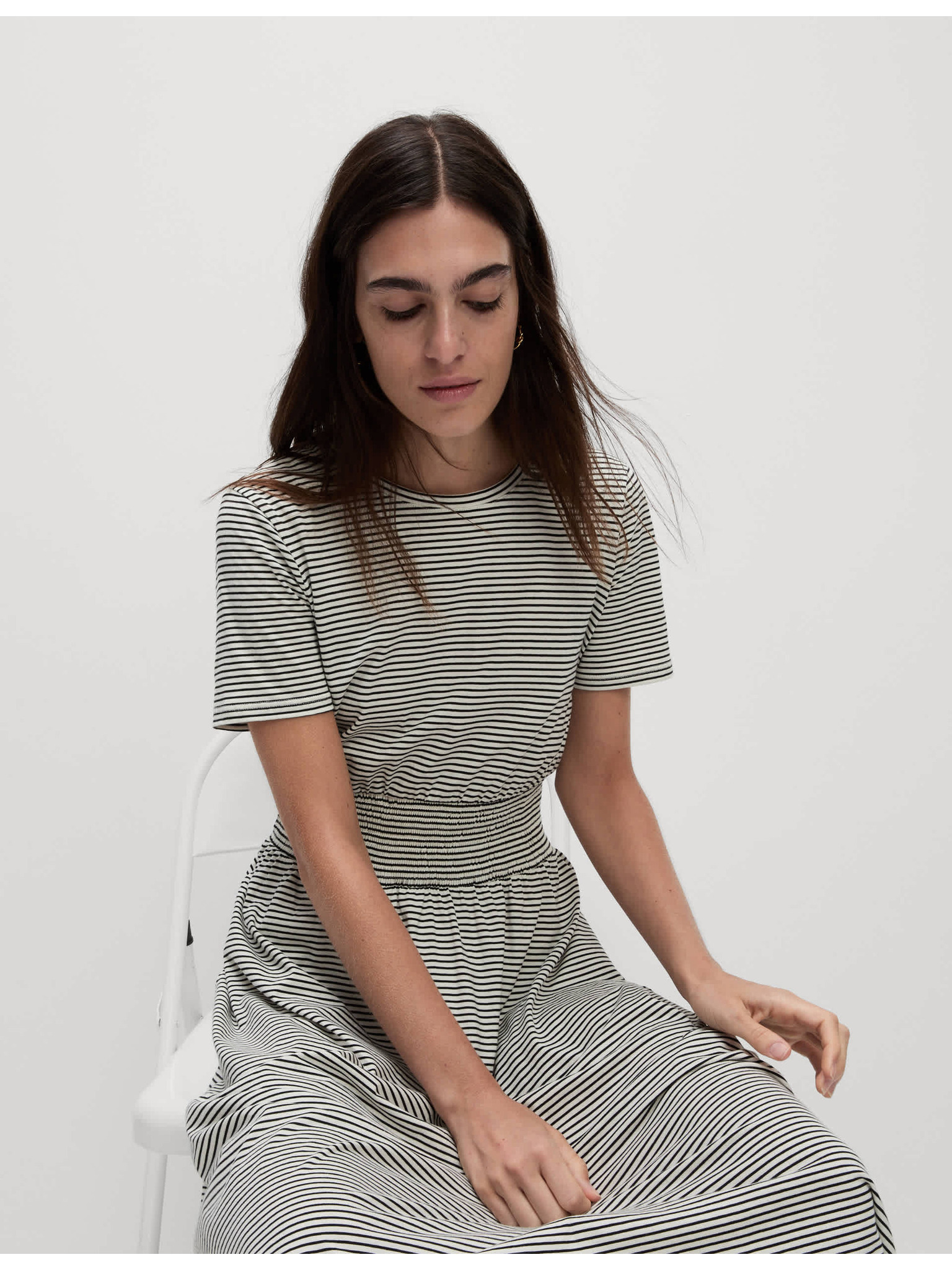 Меки набрани миди рокли от чист памук Marks & Spencer кремав