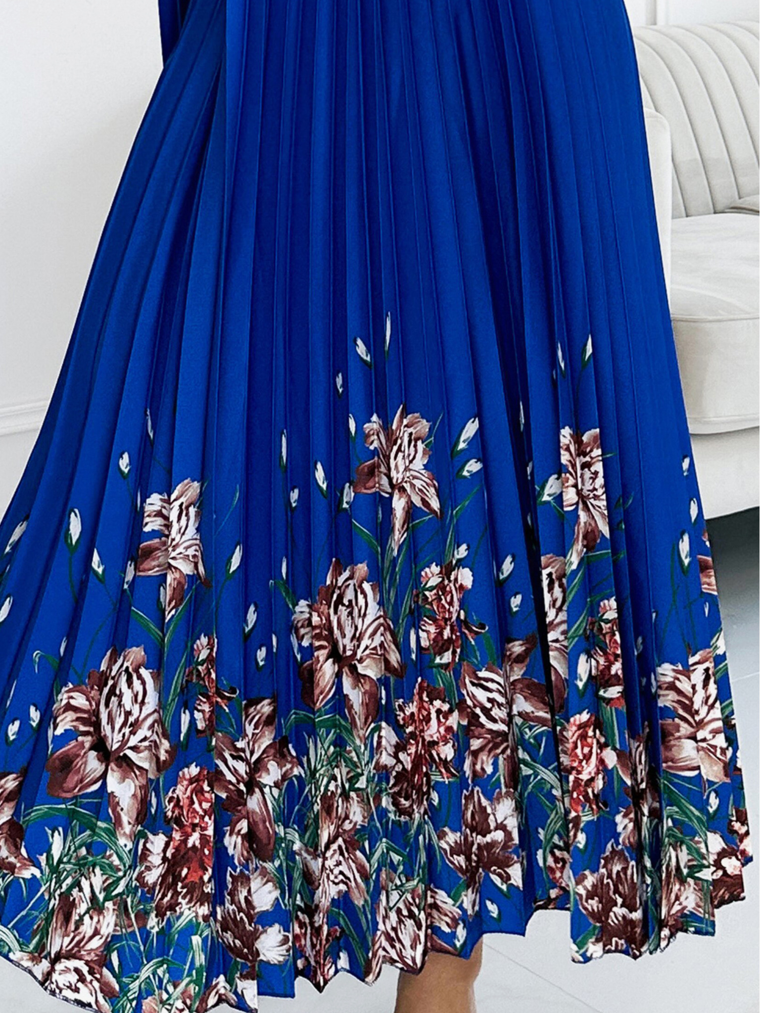 Рокля от шифон с къдрички и широк ластик - дива роза Numoco