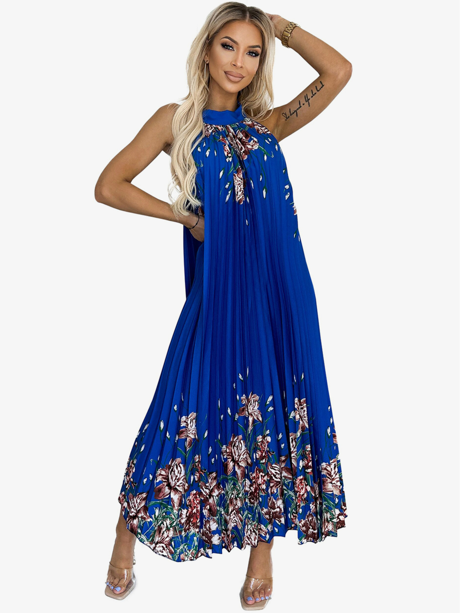 Лилава дамска флорална рокля Moodo