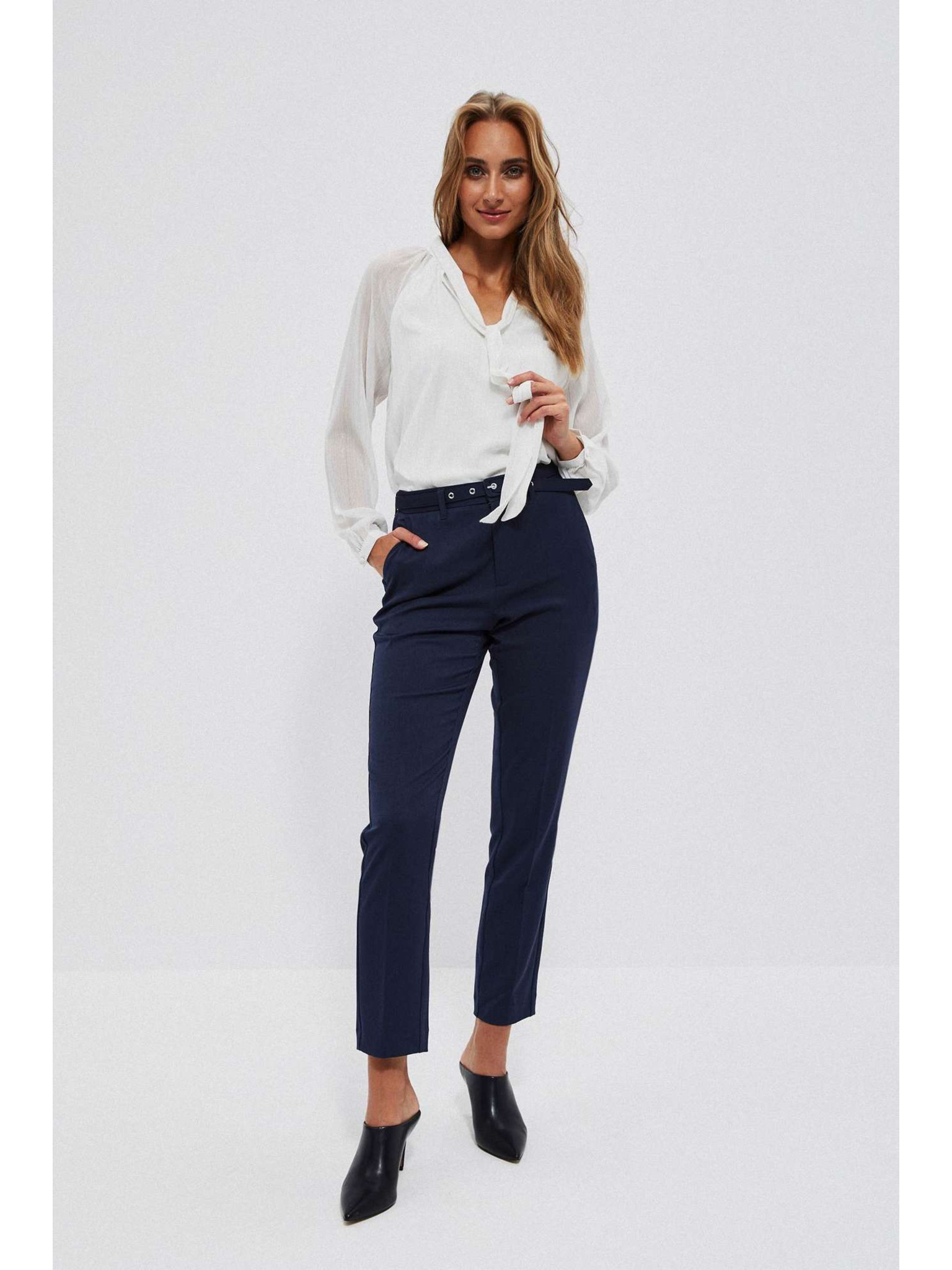 Дамска бяла блуза с висока яка Moodo