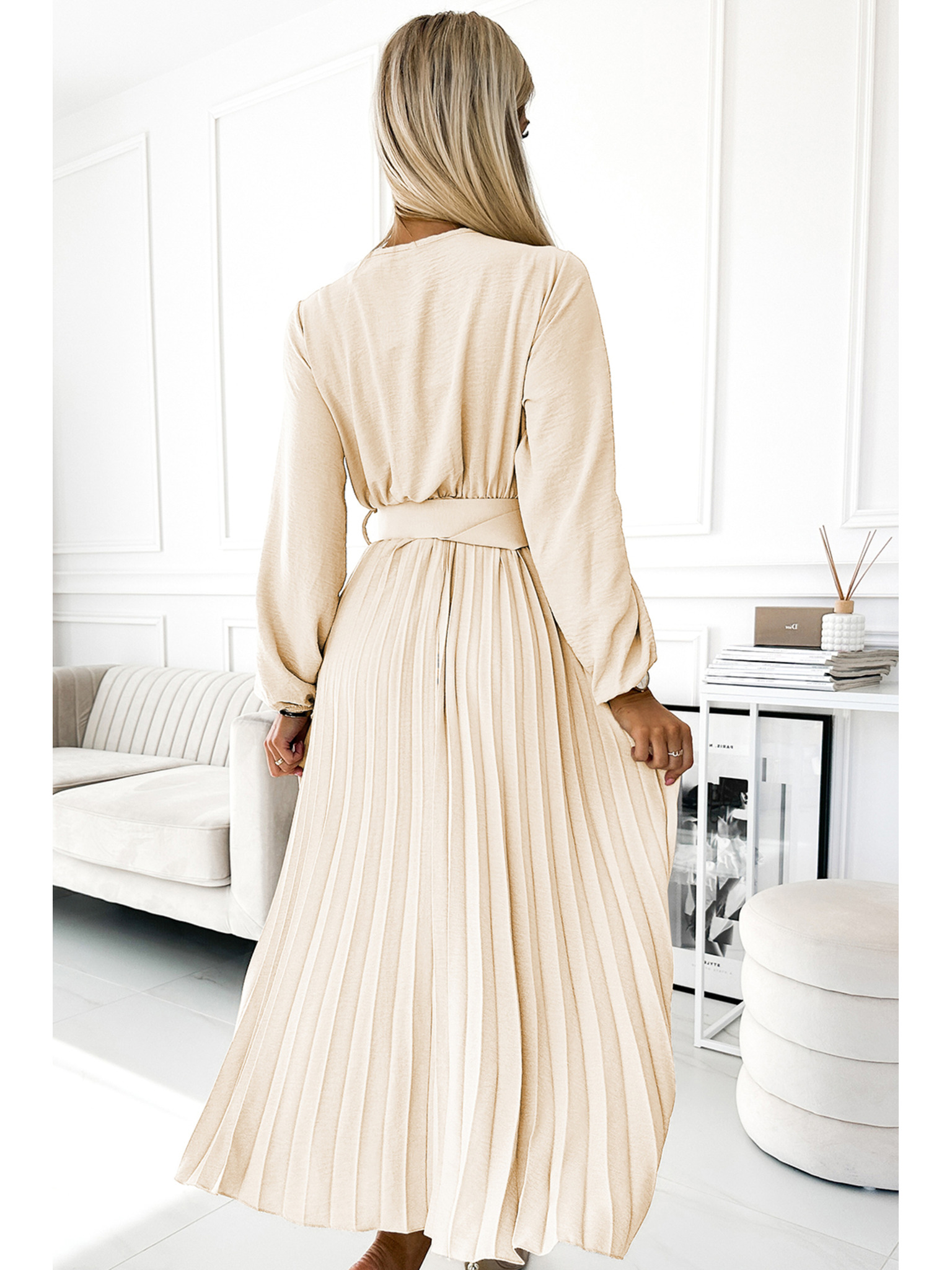 Бежова дамска рокля MOODO