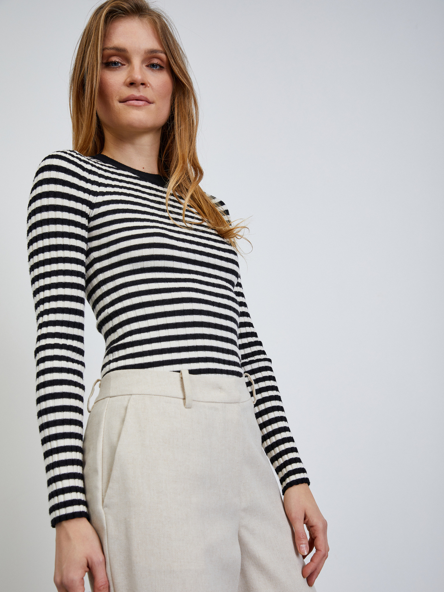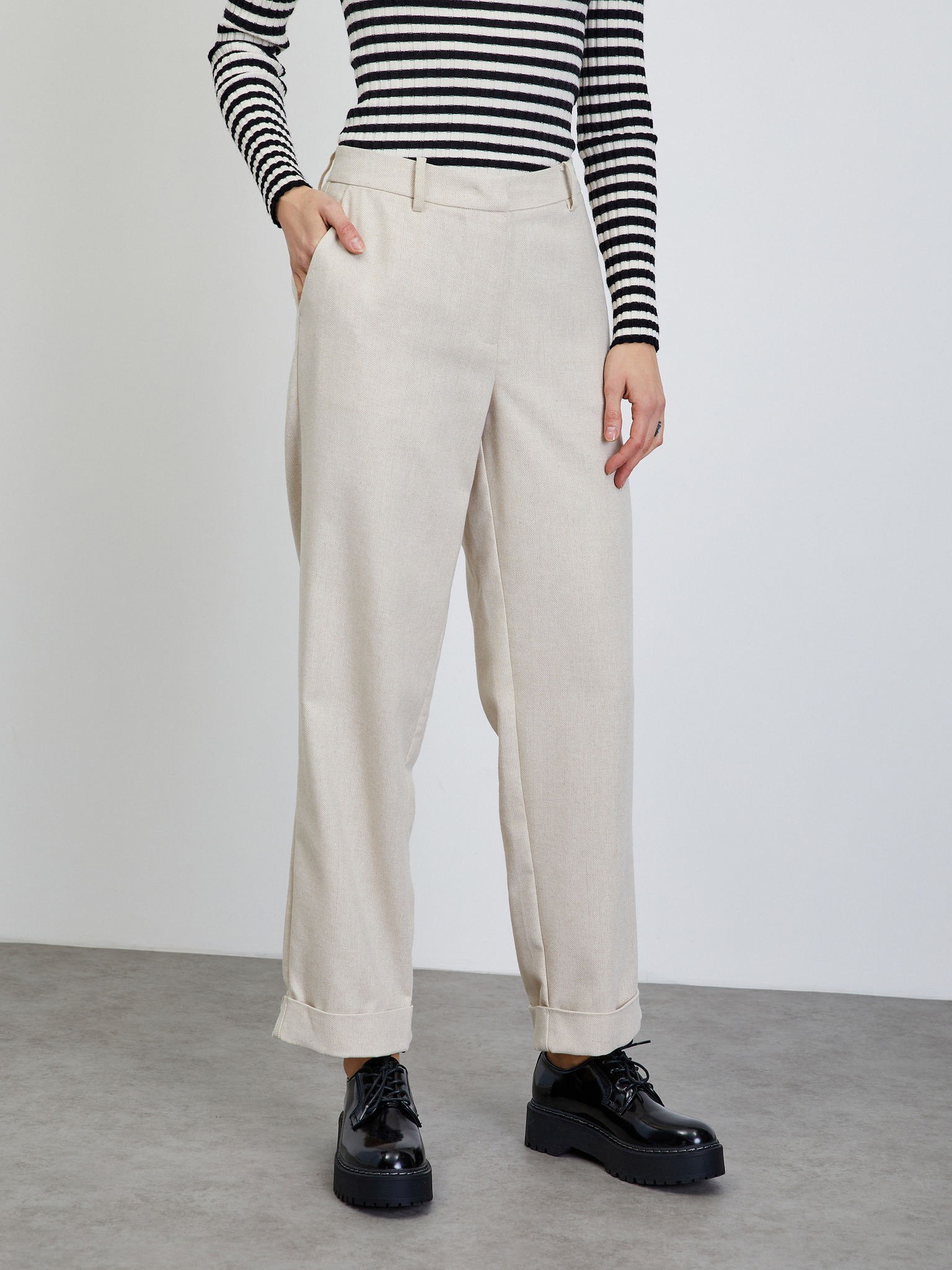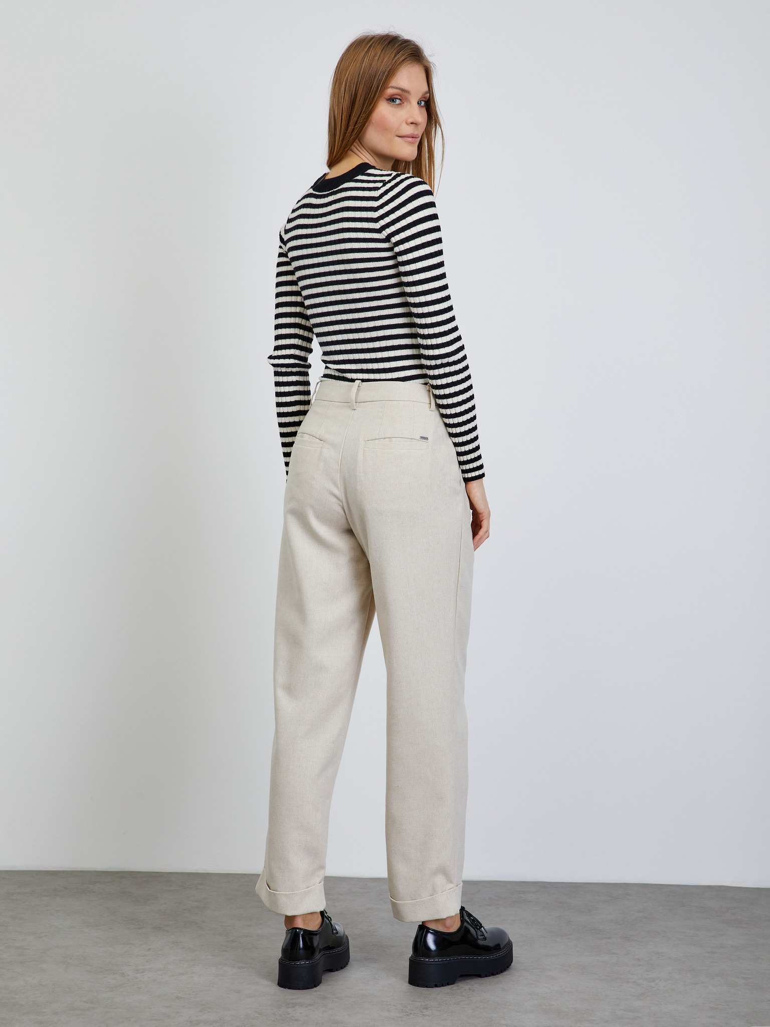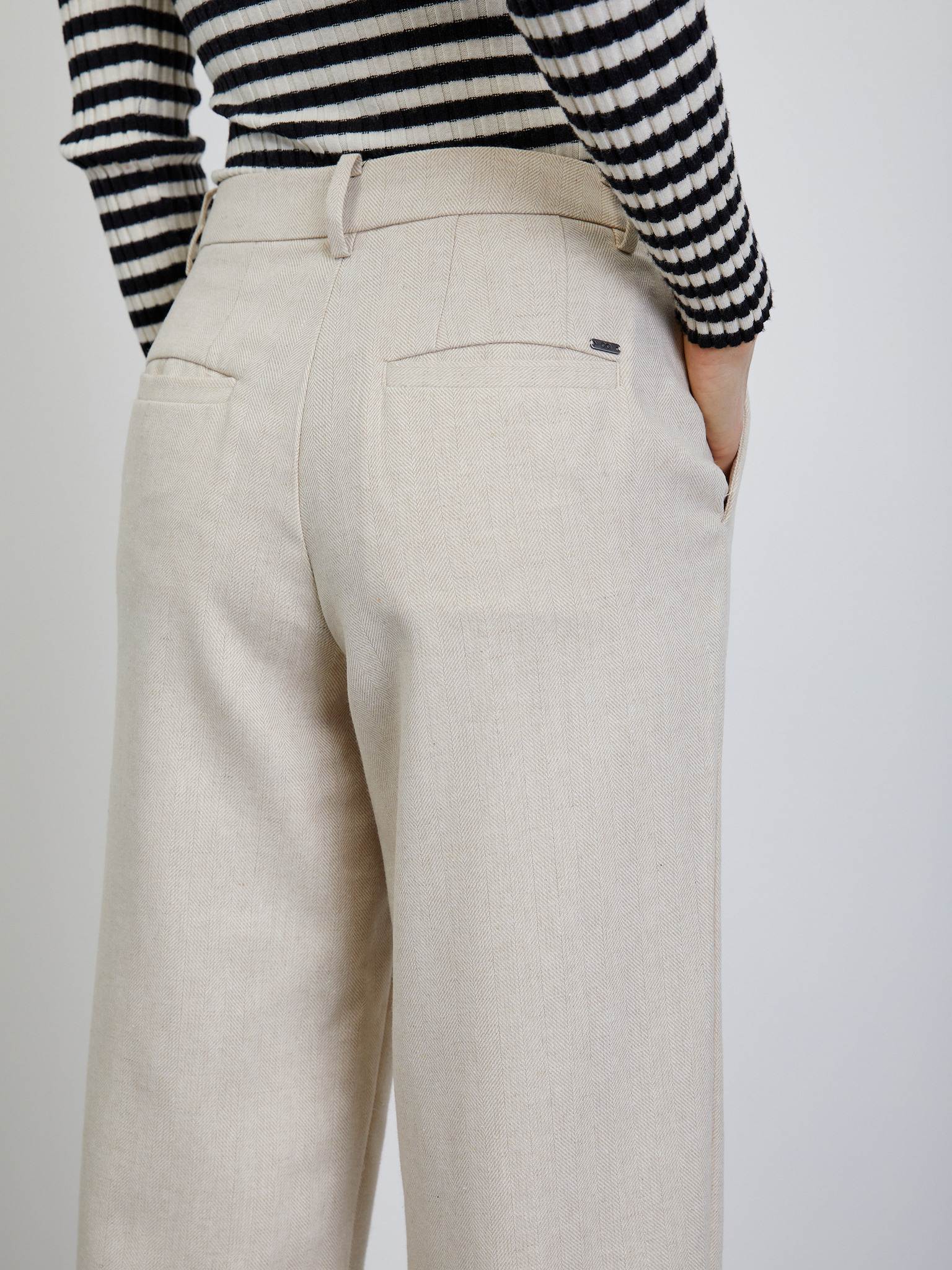 Кремави дамски широки панталони на райета ORSAY