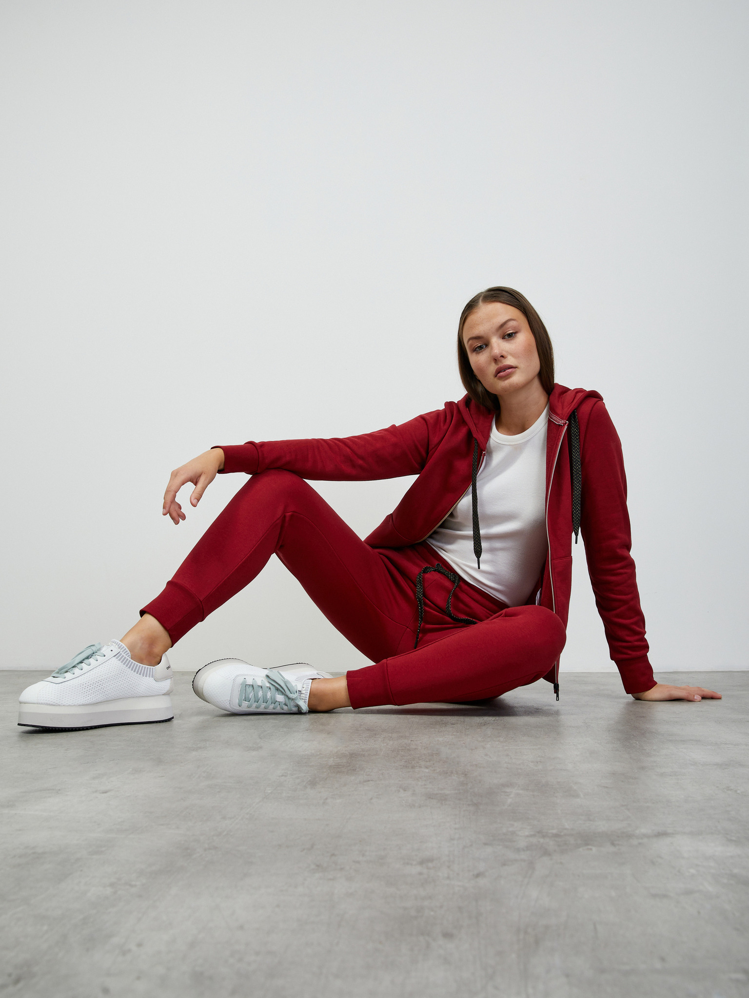 Дамски спортен суитшърт с качулка Kilpi LAYANA-W Тъмночервен