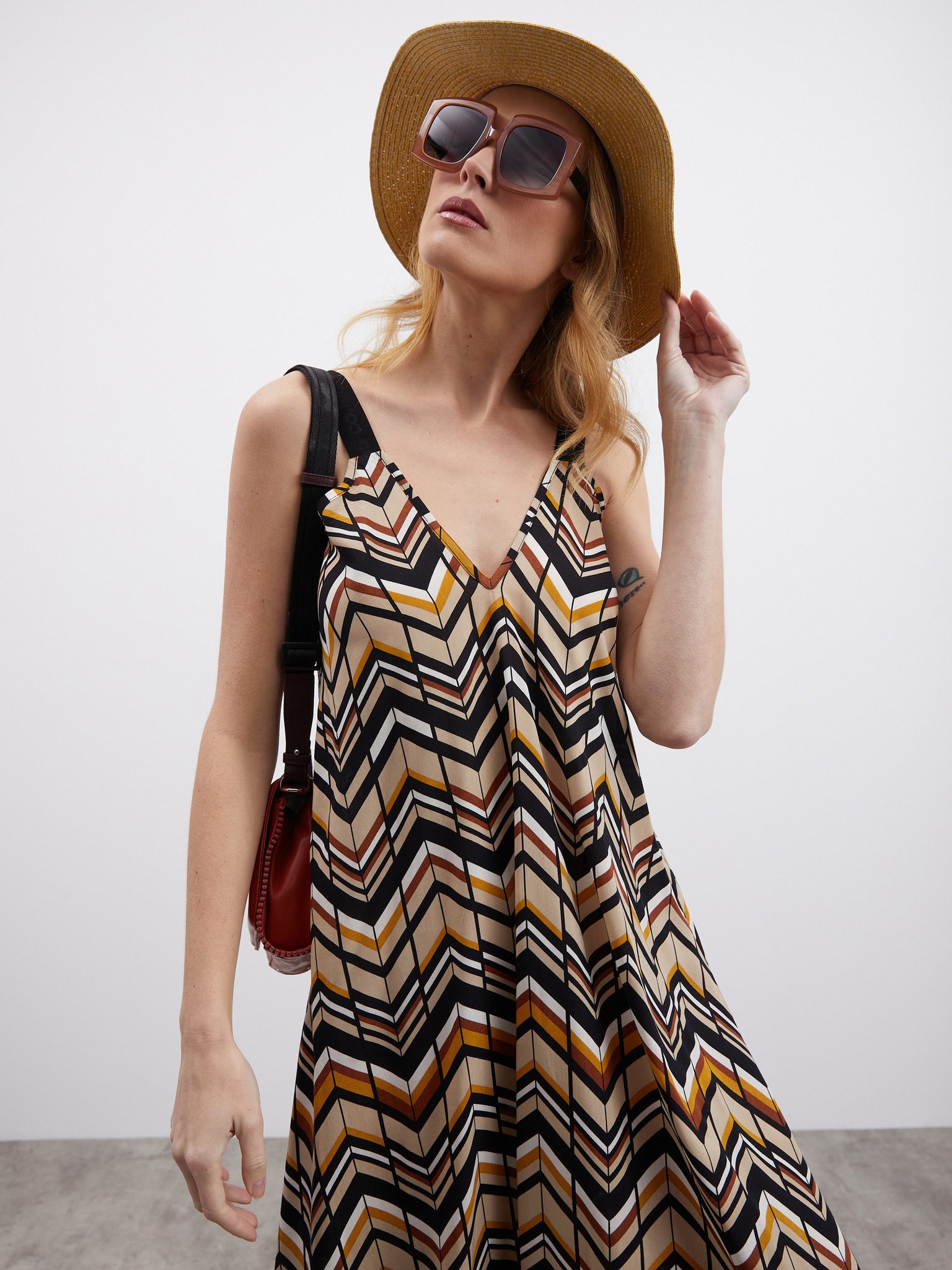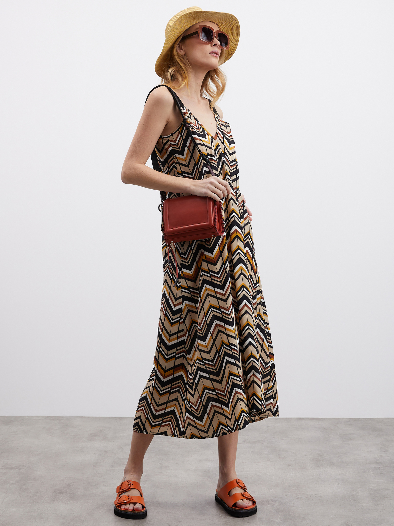 Кафява дамска шарена макси рокля ONLY Eliza