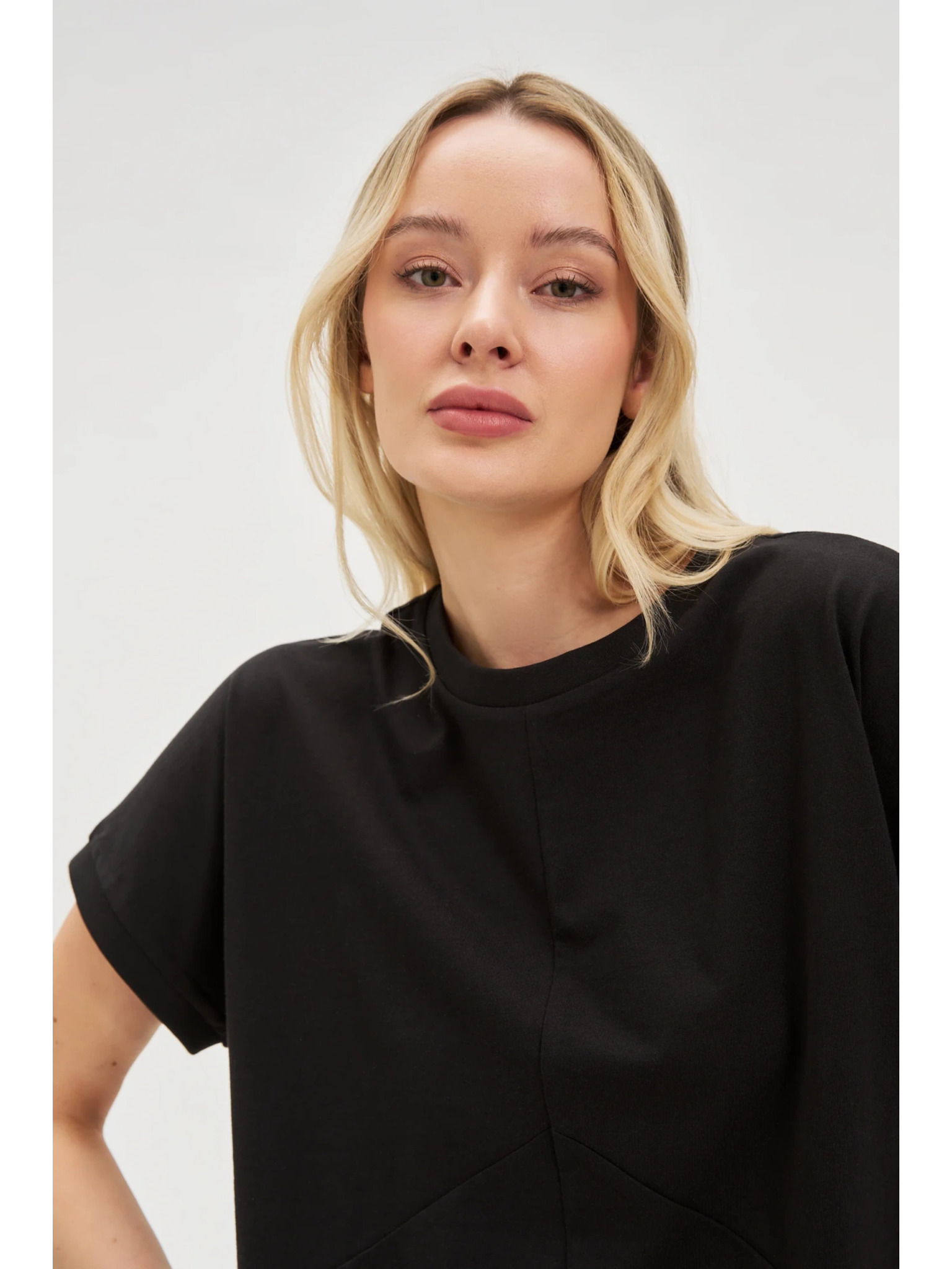• размери на модела: Модел на снимката: височина - 177 см, размери 81/62/91, размер на снимката - горна част-S, долна част-S