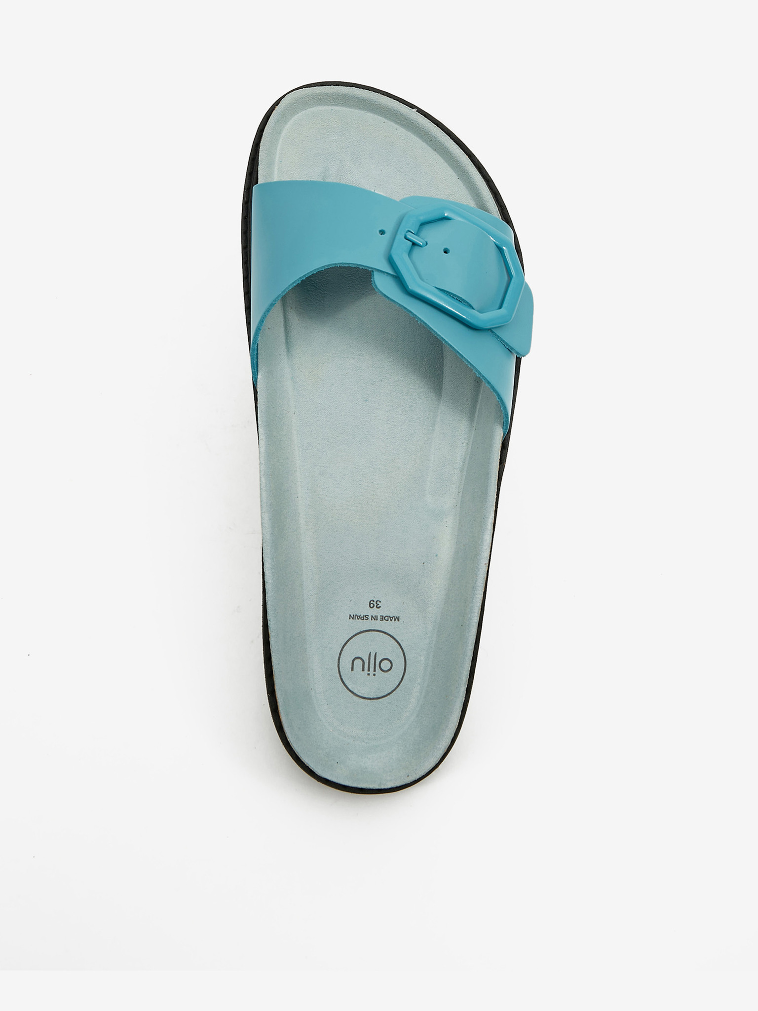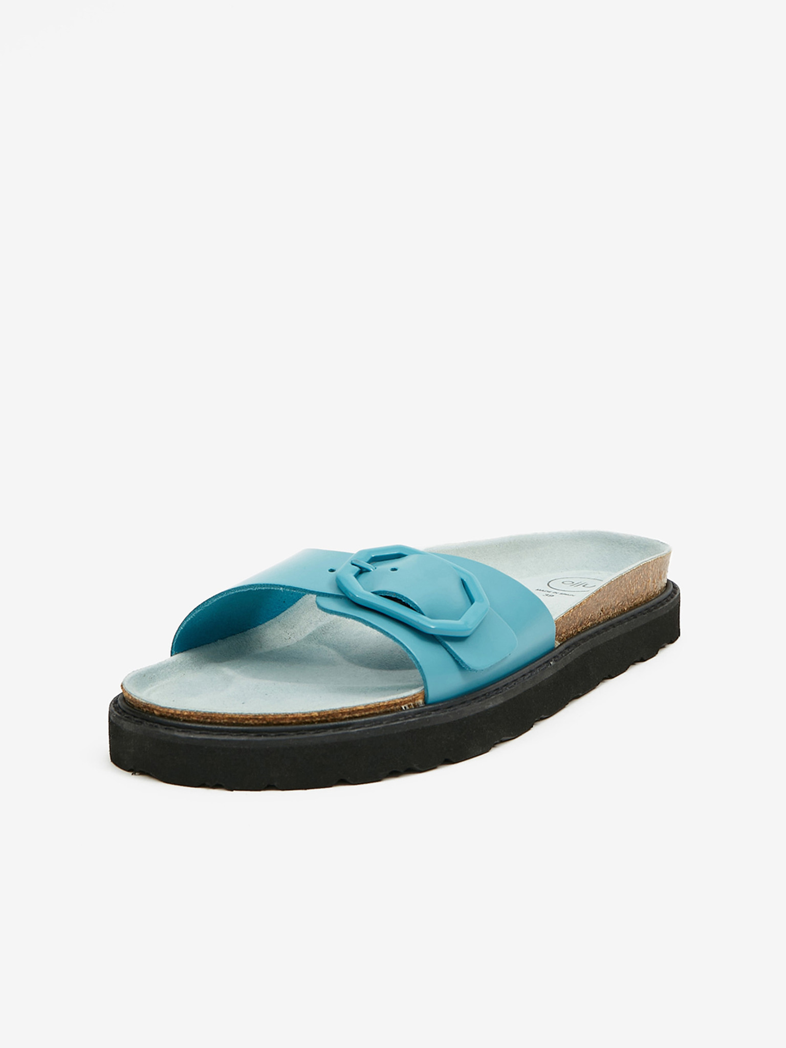 Тюркоазени дамски чехли от естествена кожа на платформа OJJU