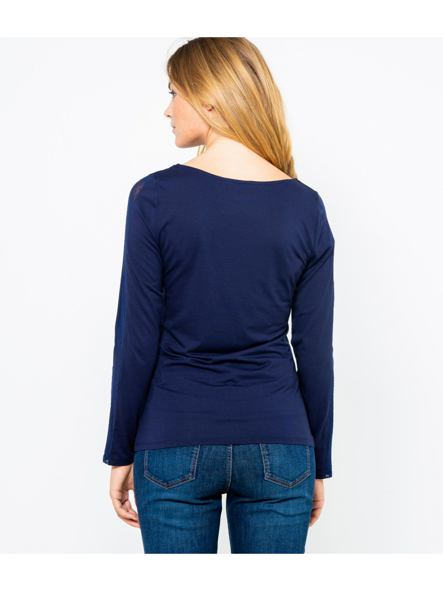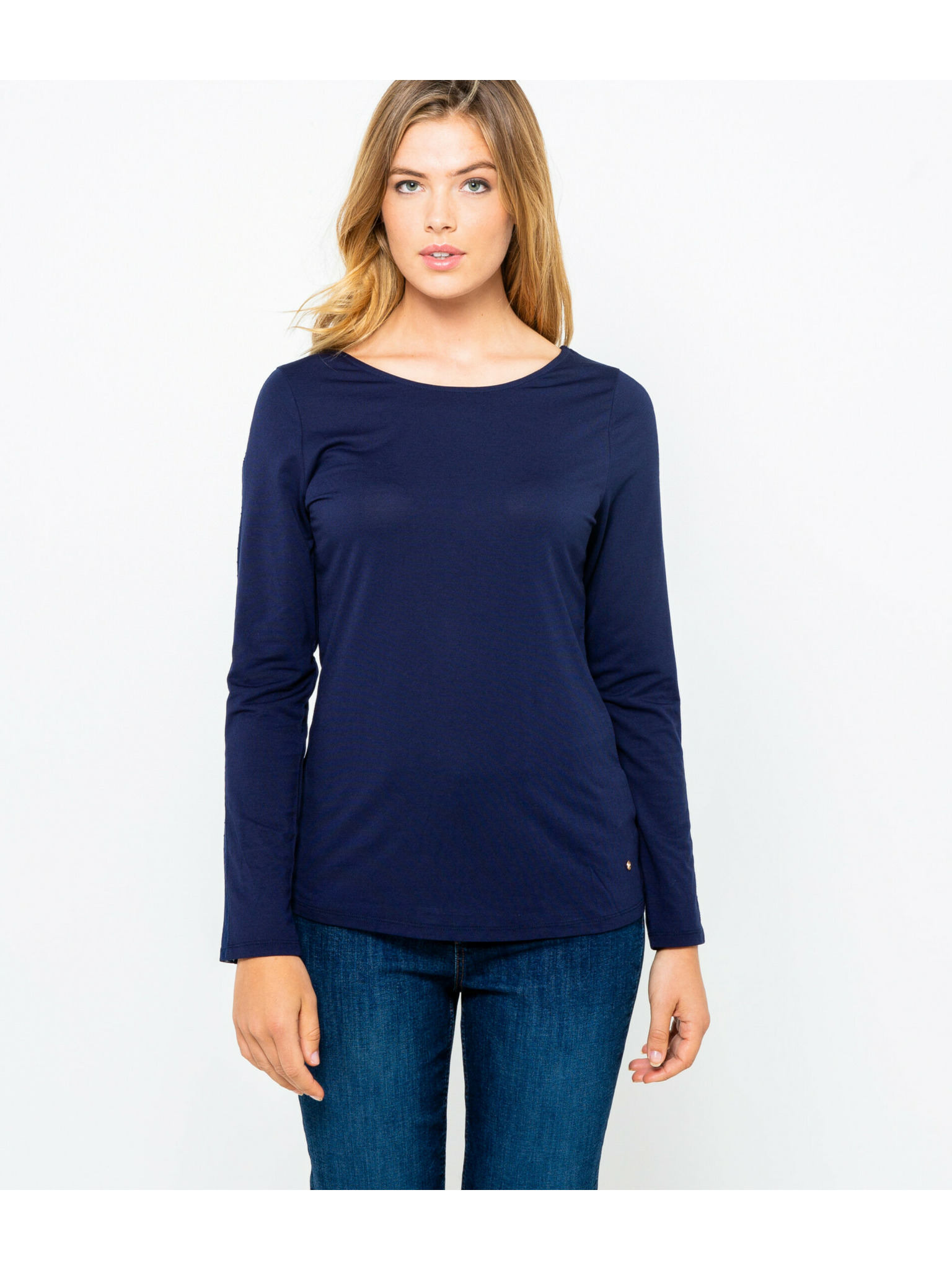 Тъмносиня дамска раирана тениска с дълъг ръкав ORSAY