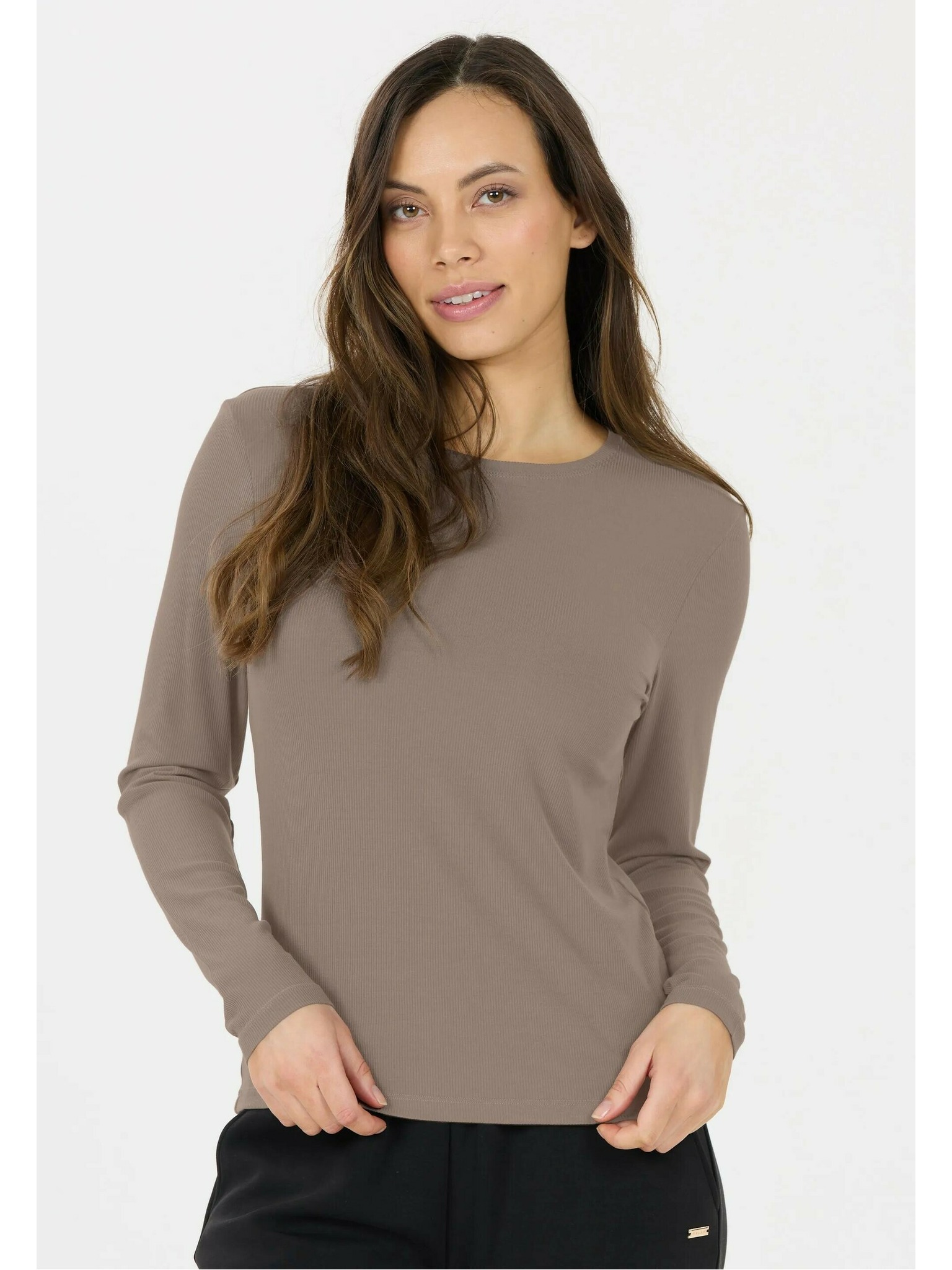 Кафява дамска основна тениска с дълъг ръкав ZOOT.lab Evana