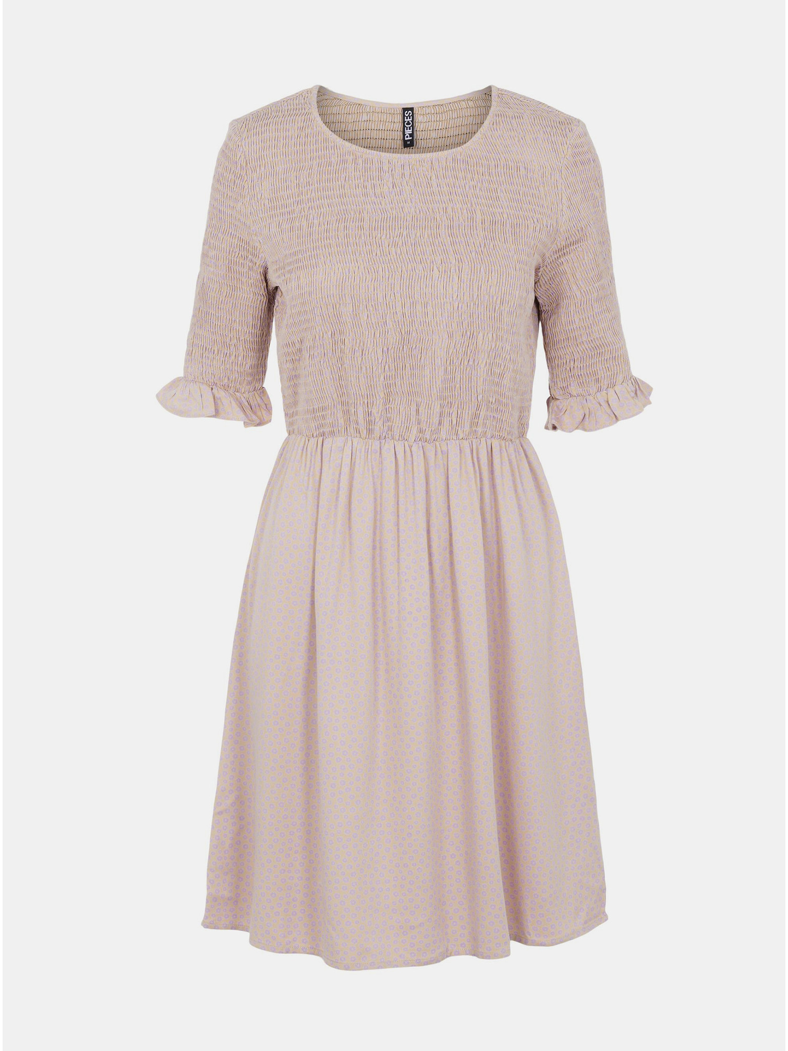 Плисирана рокля с деколте и волани - розови цветя Numoco POLINA