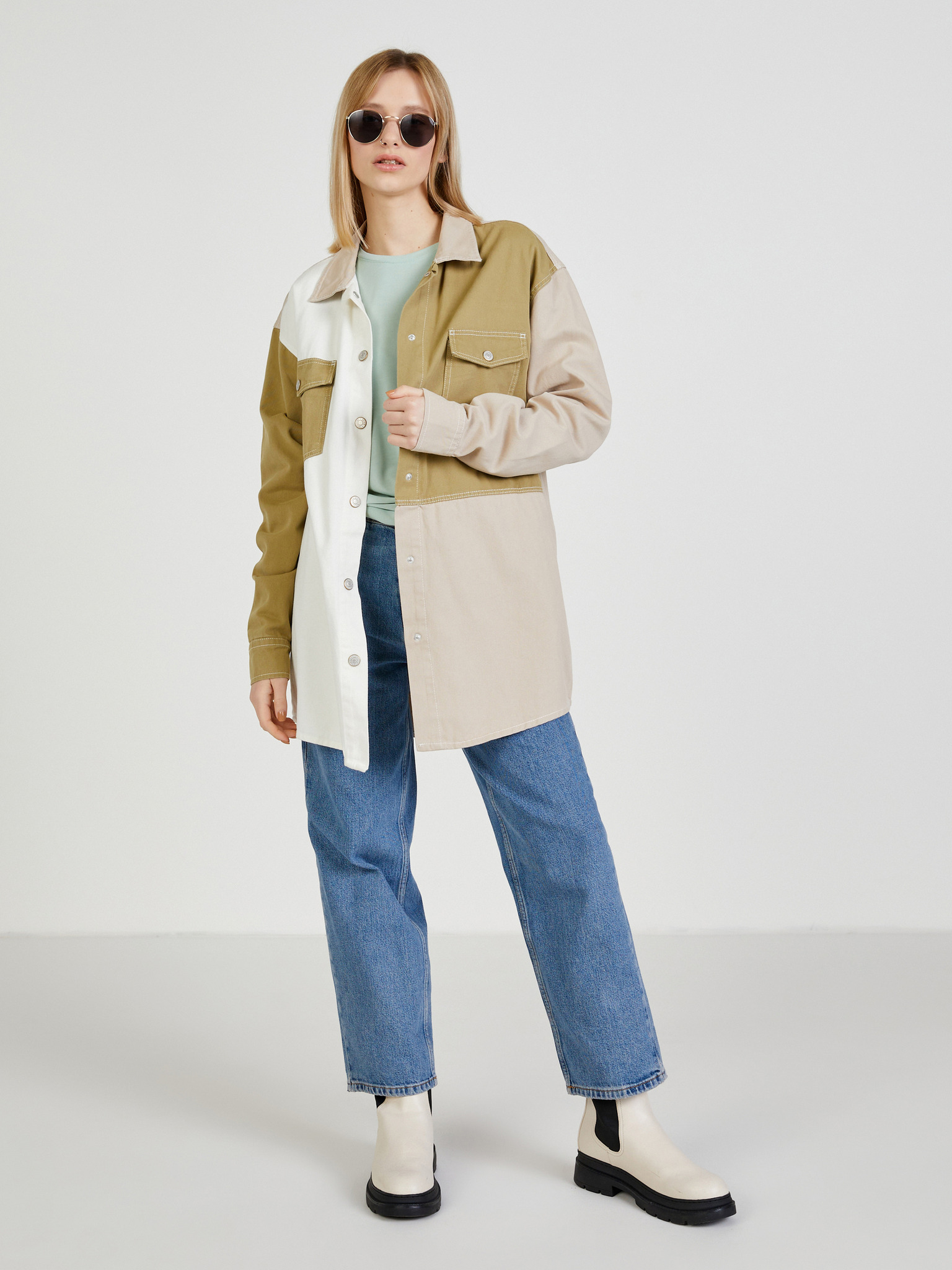 Светлооливков дамски топ с дълъг ръкав