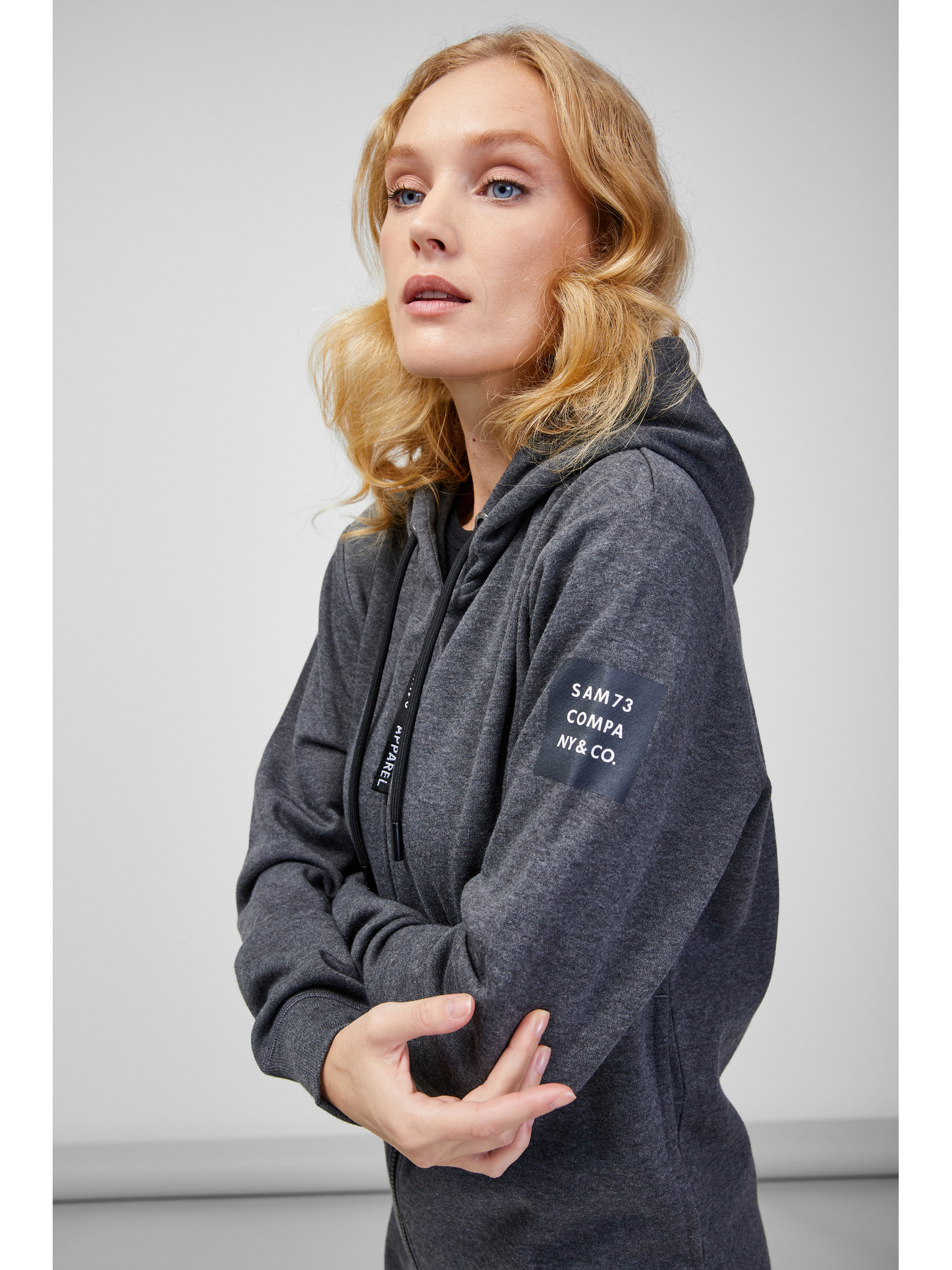 Светлосив дамски суитчър с качулка и цип SAM 73 Lisa