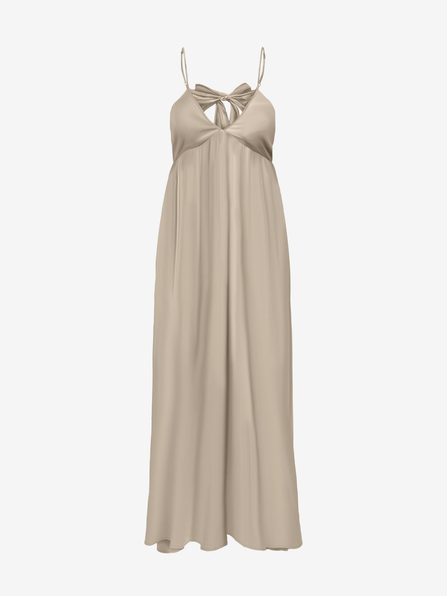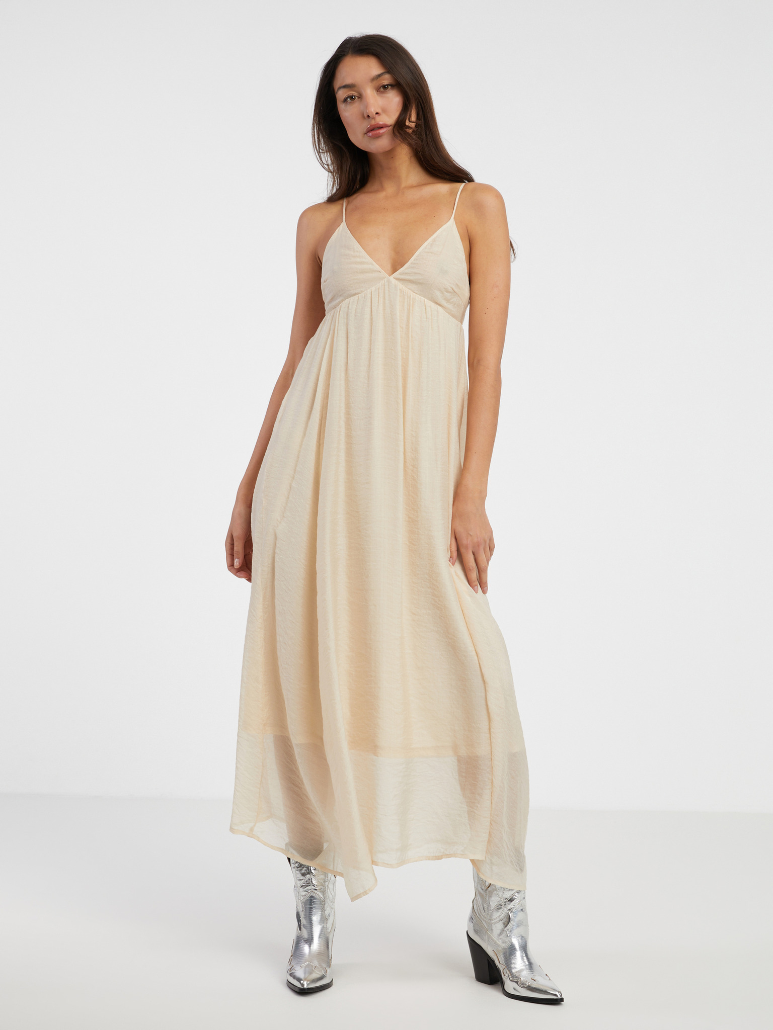 JENNIFER дълги рокли с цепка при крачола, ръкави и деколте - бежови