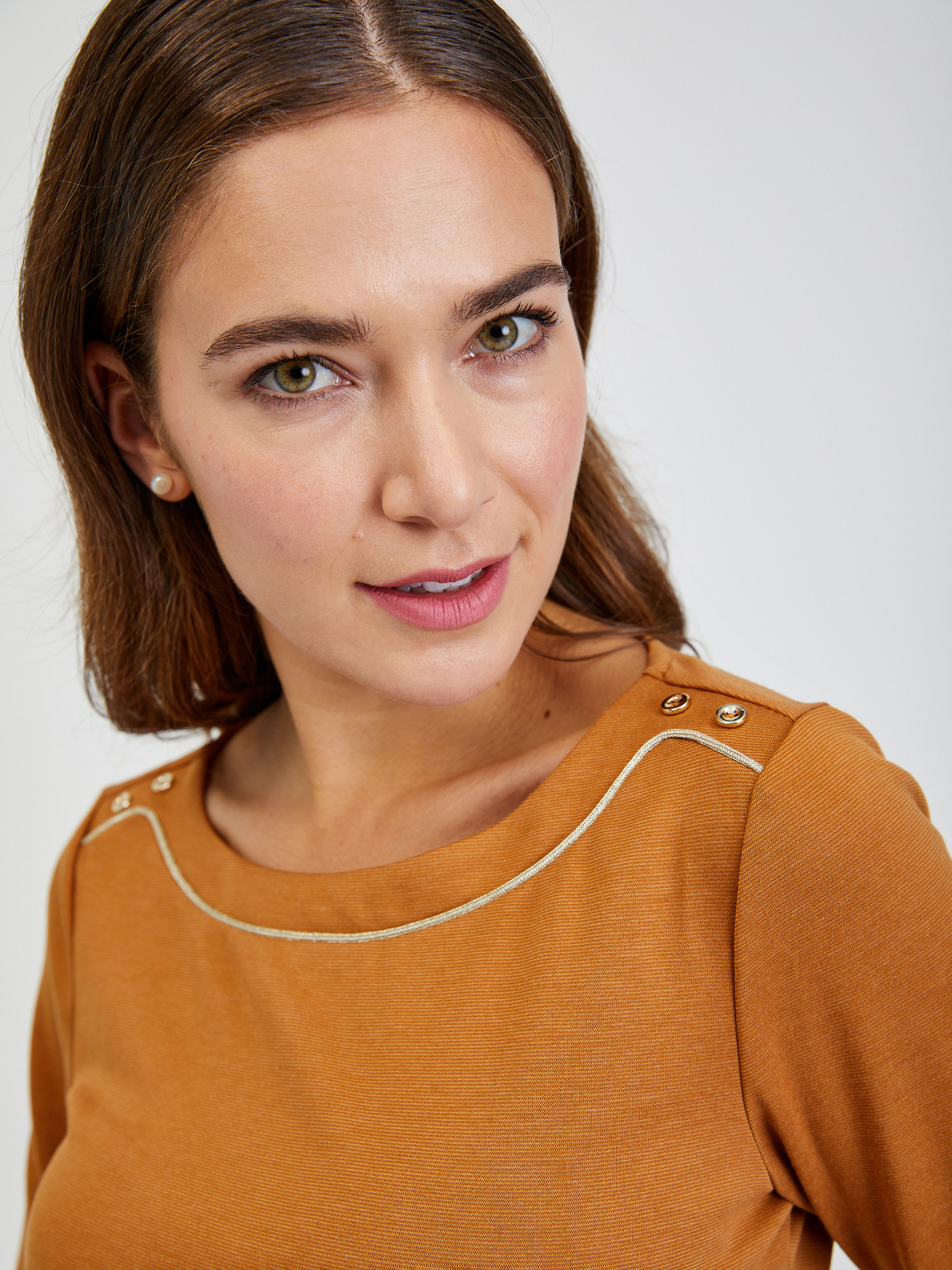 Светлокафява дамска тениска с дълъг ръкав ORSAY