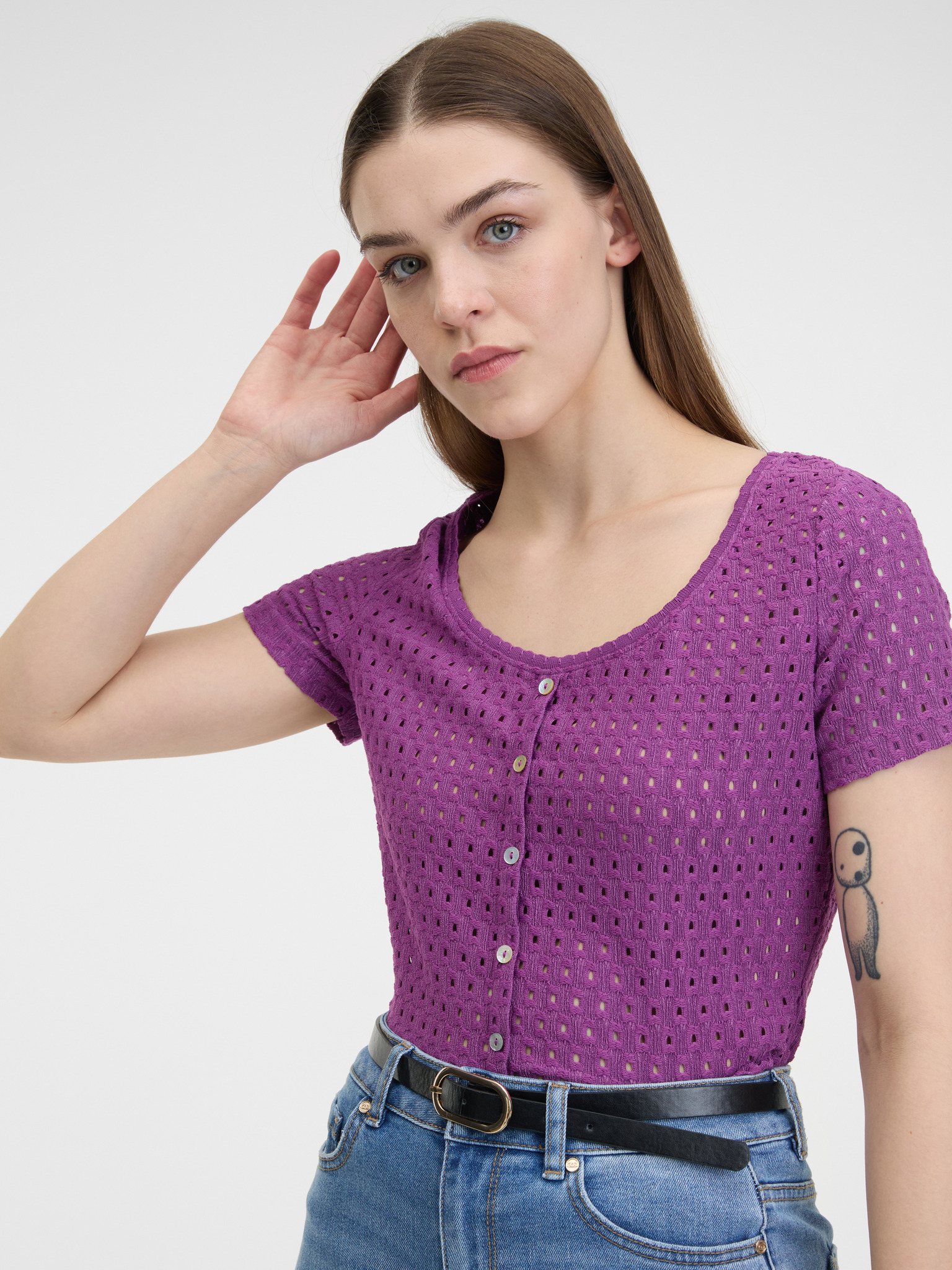 Тъмнoрозова дамска тениска с къс ръкав ORSAY