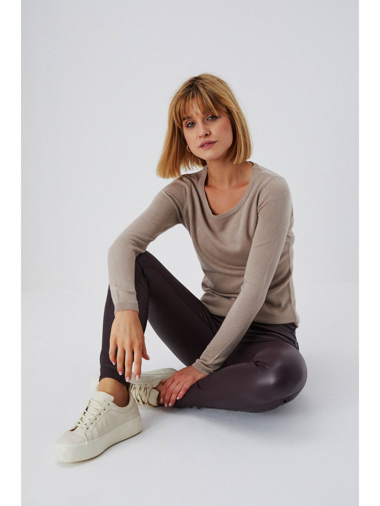 Светлокафяви свободни панталони Moodo