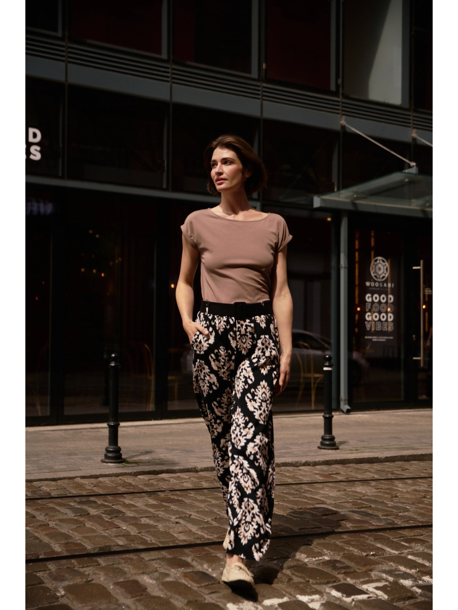 Светлокафяви свободни панталони Moodo