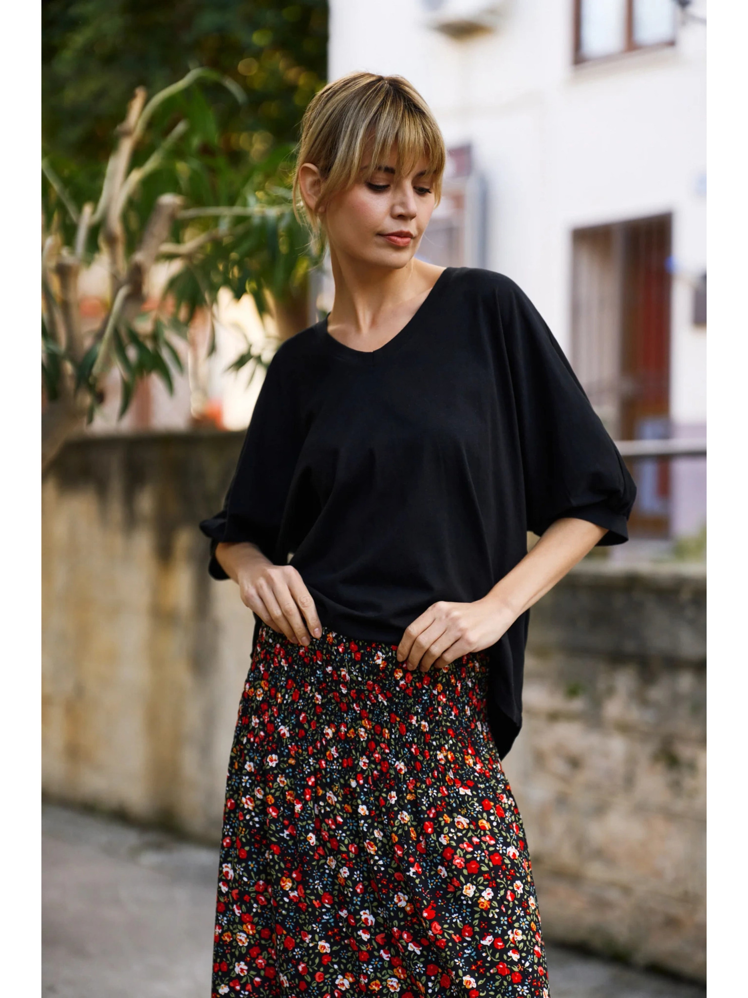 Черен basic топ с 3/4 ръкав Moodo