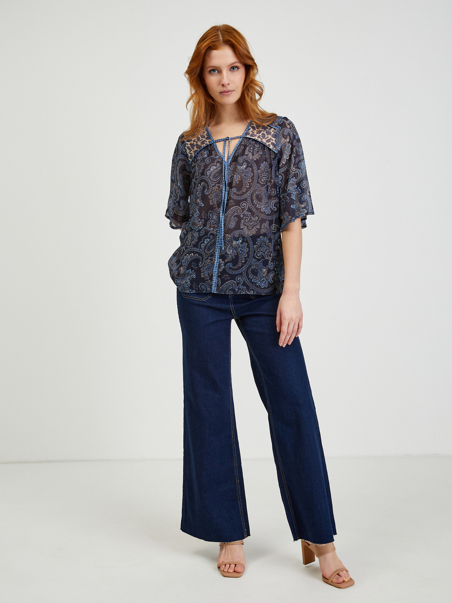 Тъмносиня дамска блуза с десен ORSAY