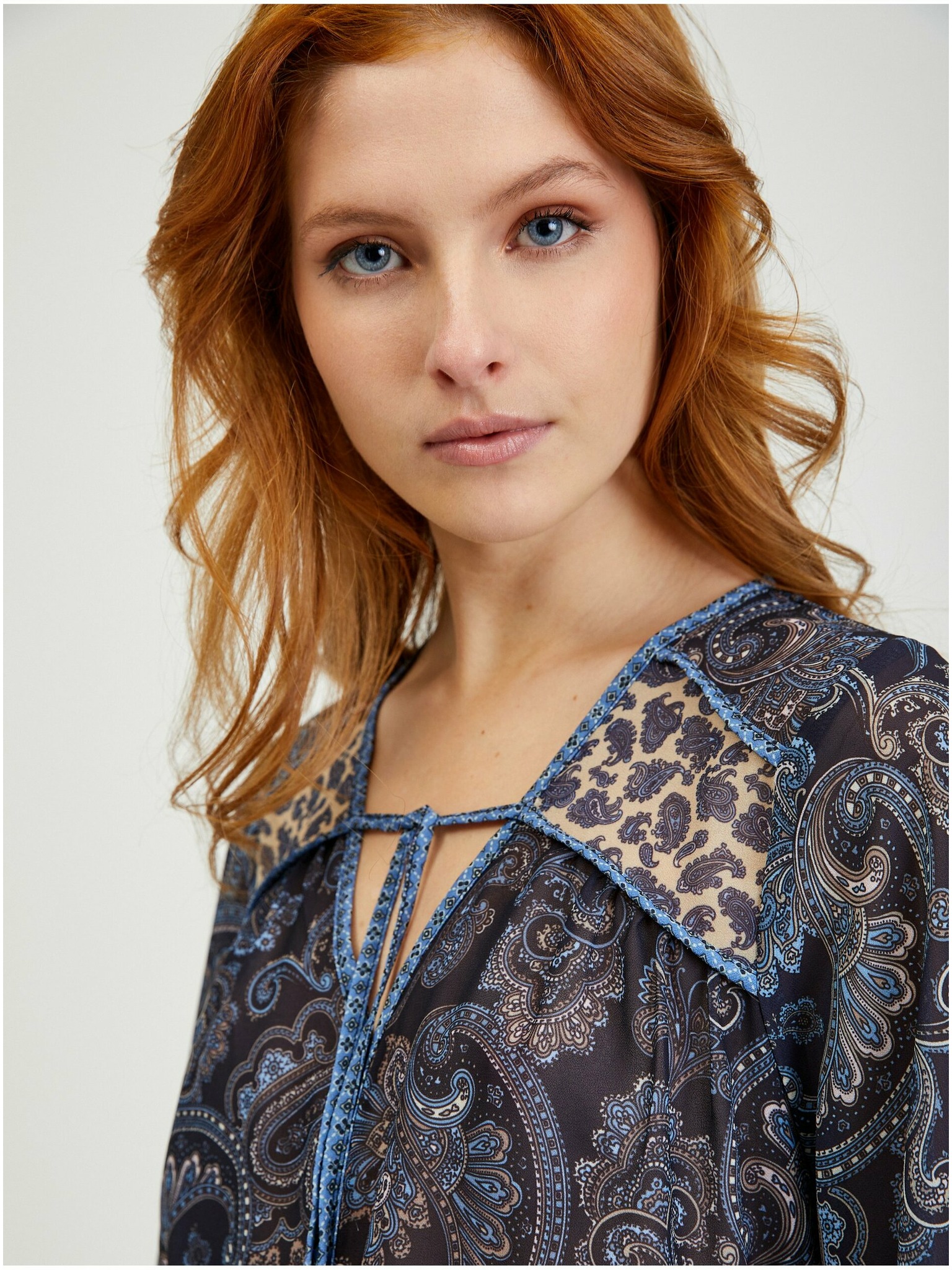 Синьо-бяла щампована блуза