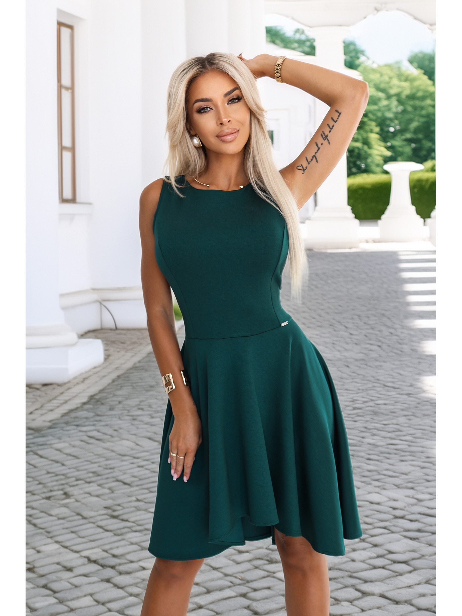 Елегантна рокля NELL с волани на раменете - тъмнозелена