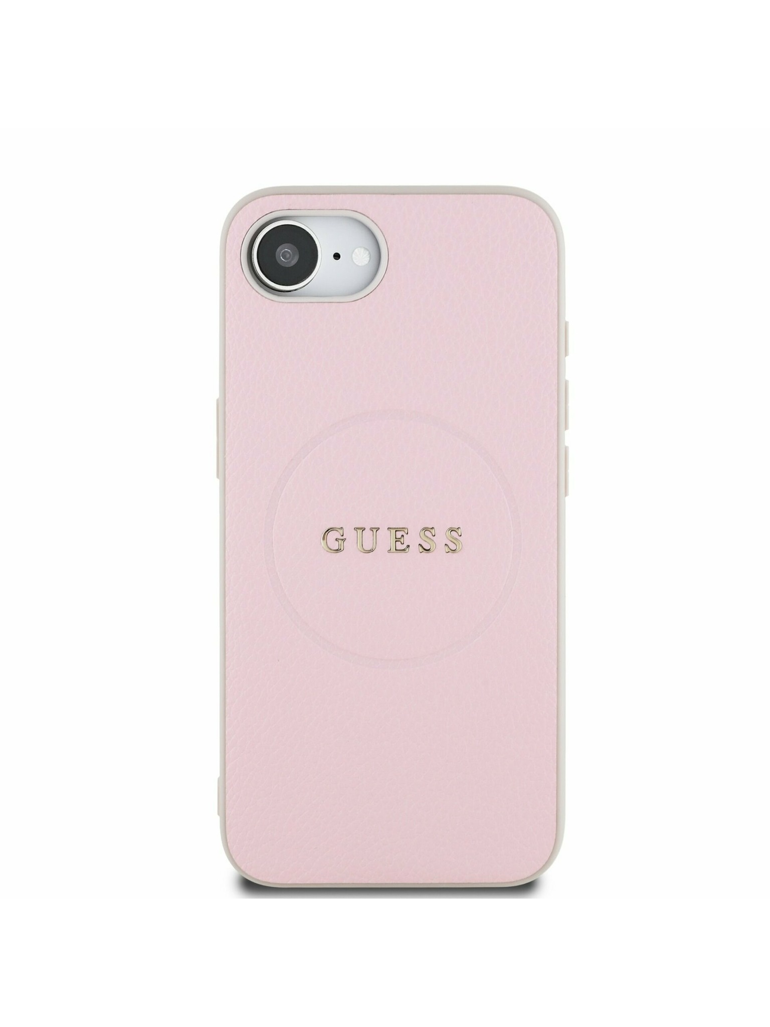 Guess PU 4G Metal Logo Strap Заден калъф за iPhone 15 Розов