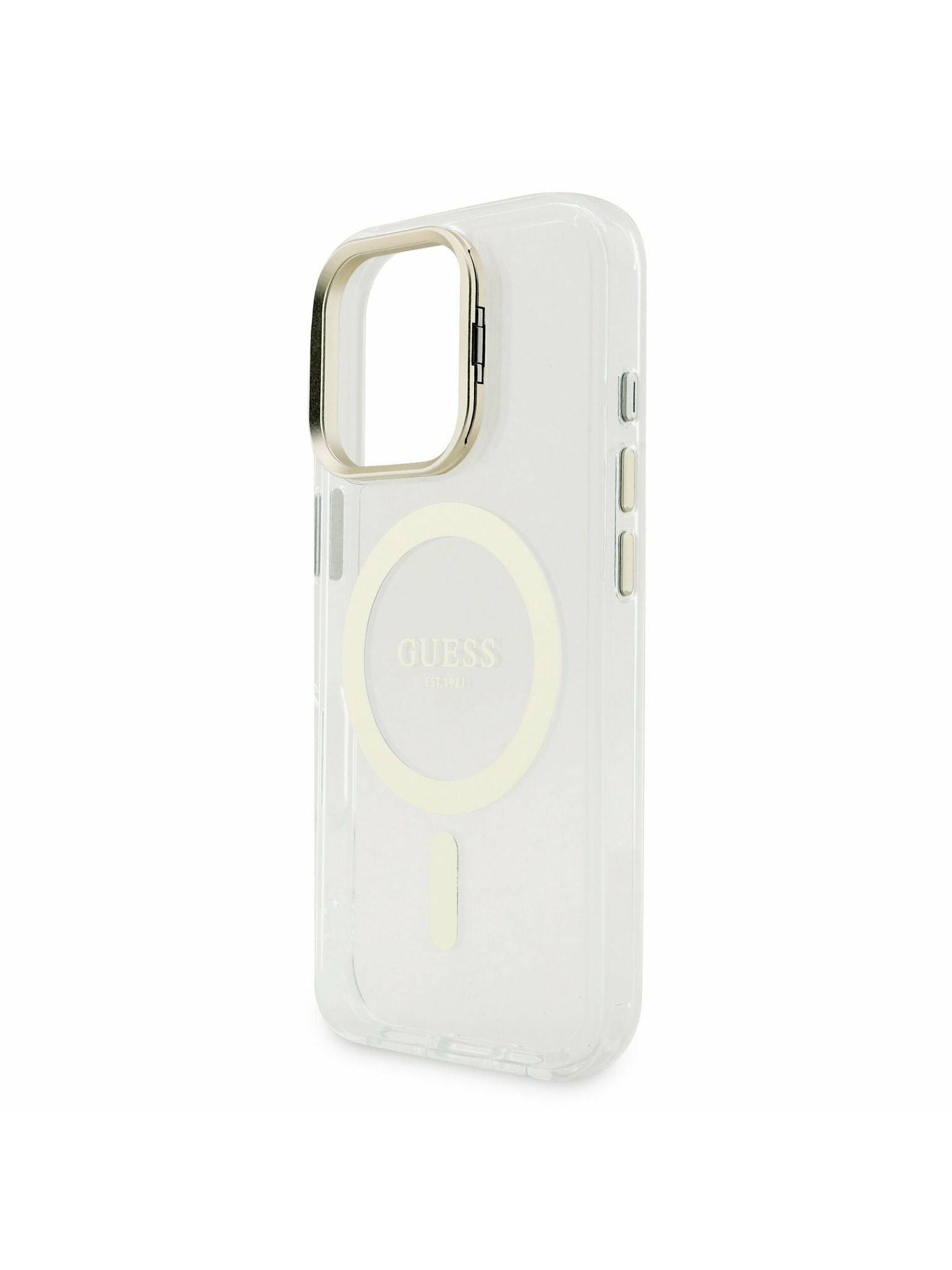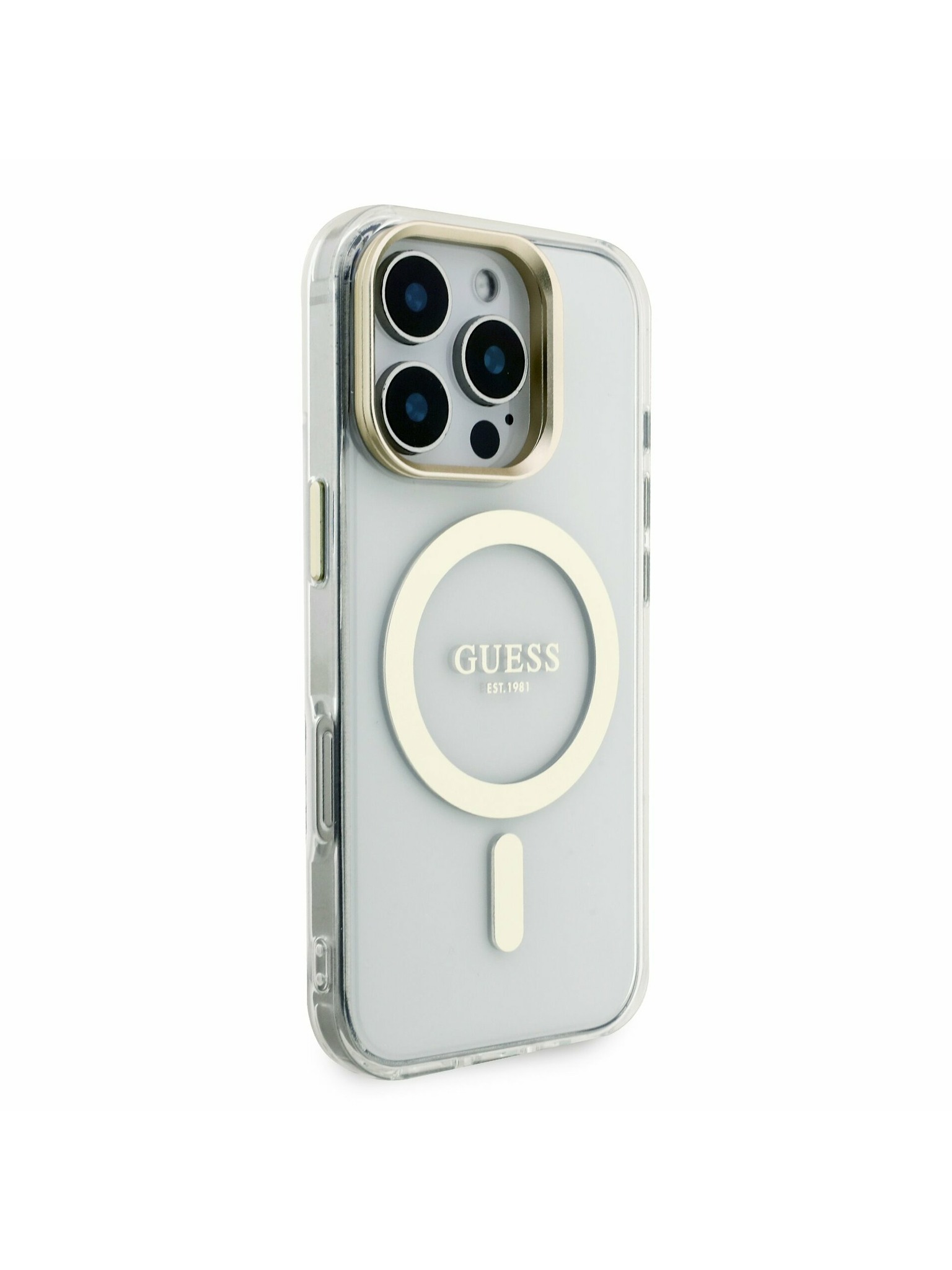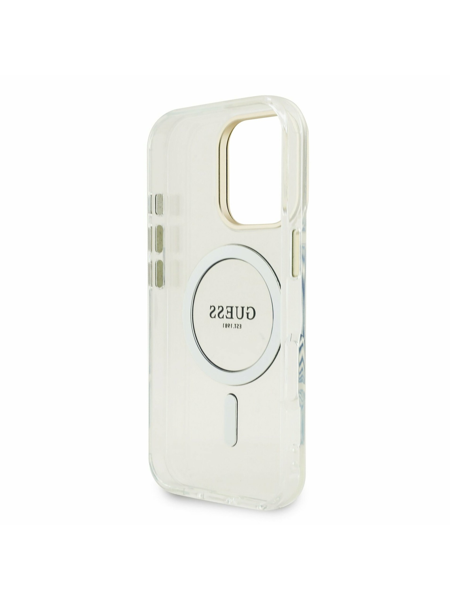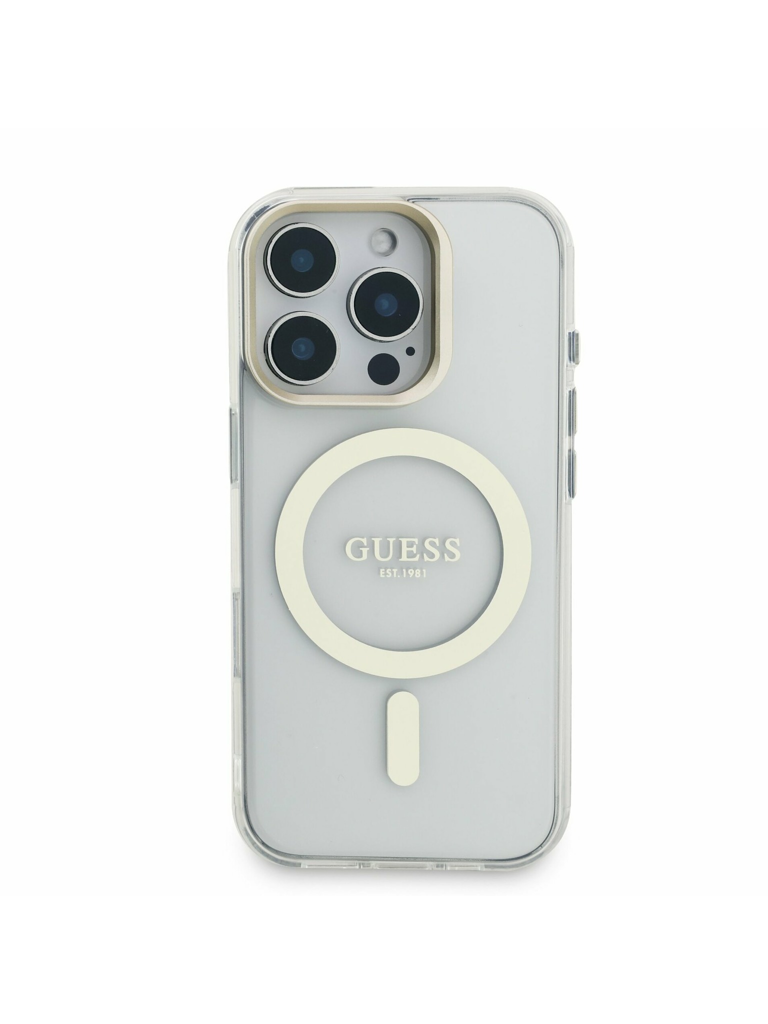 Guess PC/TPU Electroplated Stand Camera Frame MagSafe Заден калъф с Подменяем Фон за iPhone 16 Pro