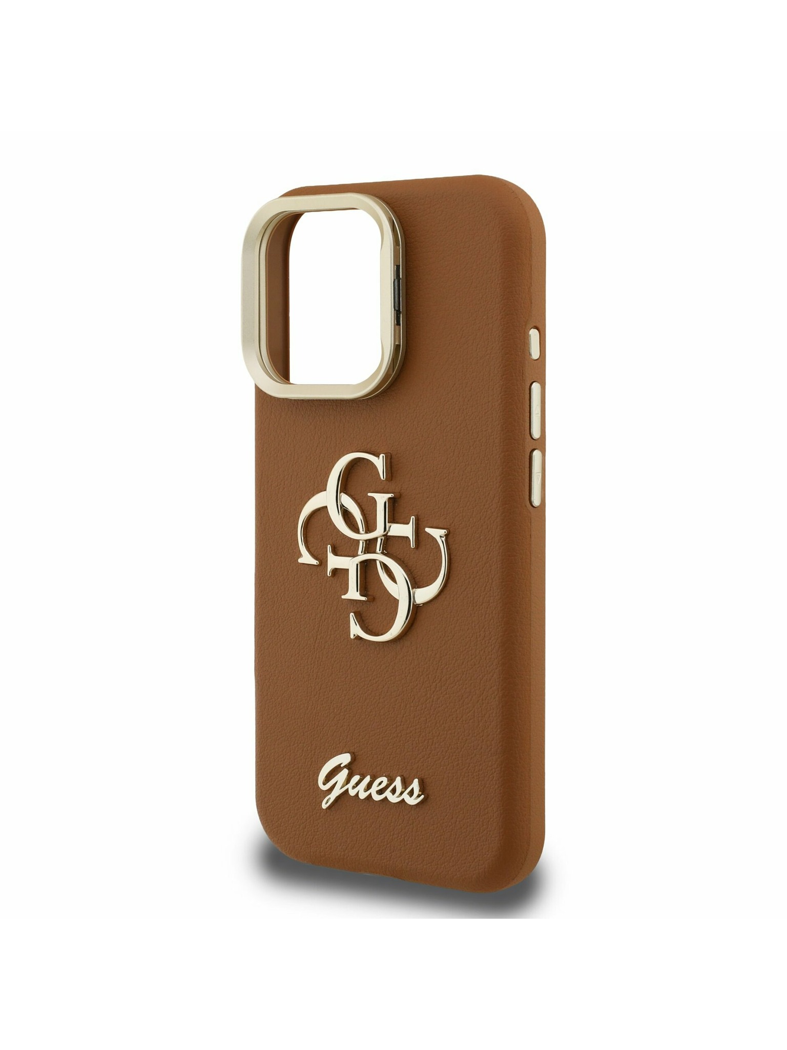 Guess PU 4G Metal Logo Strap Заден калъф за iPhone 16 Кафяв