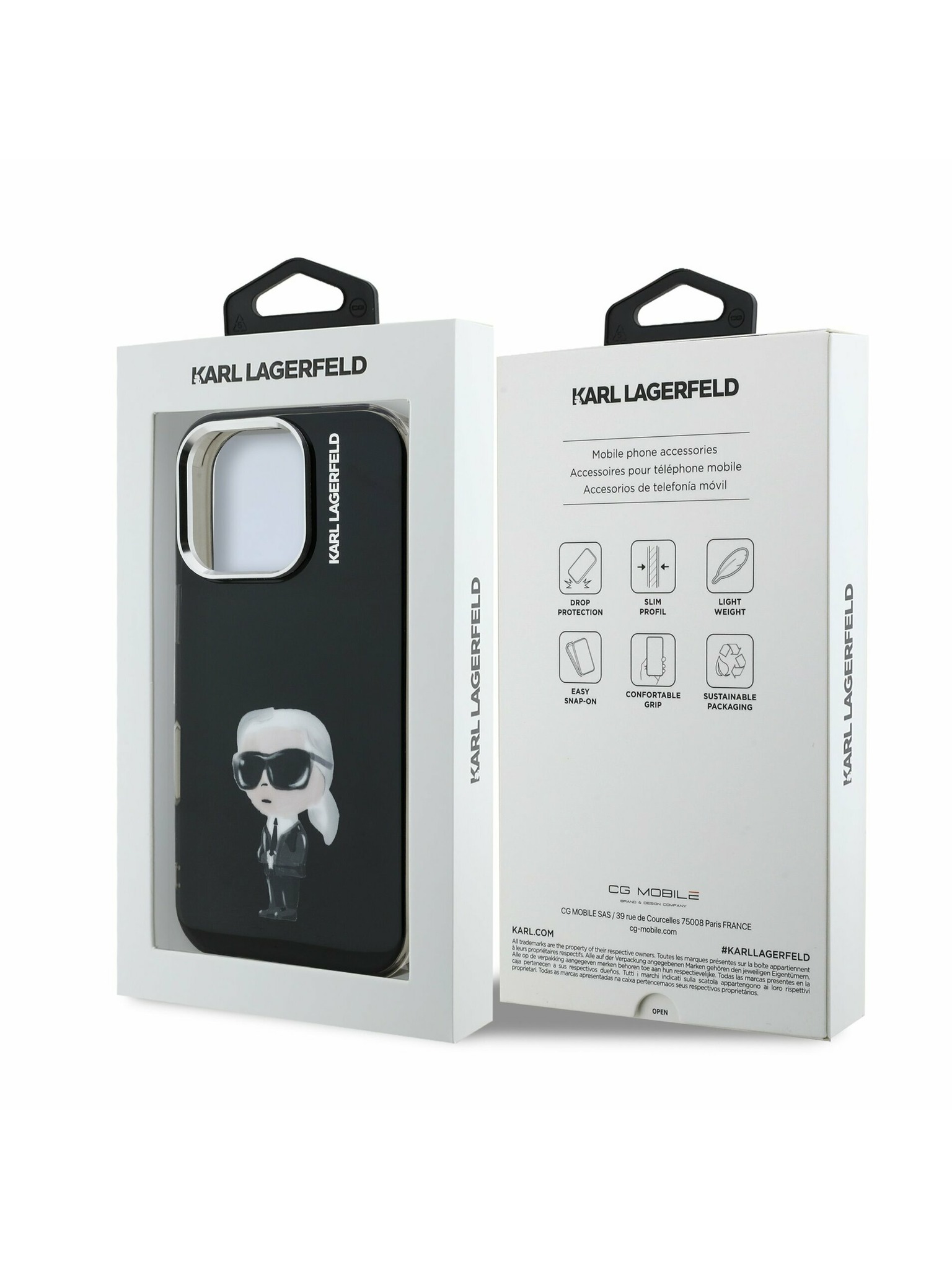 Karl Lagerfeld IML Брокат Карл и Шупет Скица MagSafe Заден Капак за iPhone 15 Pro Max Черен