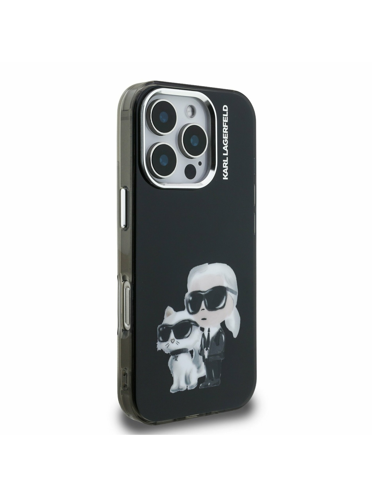 Karl Lagerfeld IML Акварел Karl и Choupette Заден Капак за iPhone 15 Pro - Черен