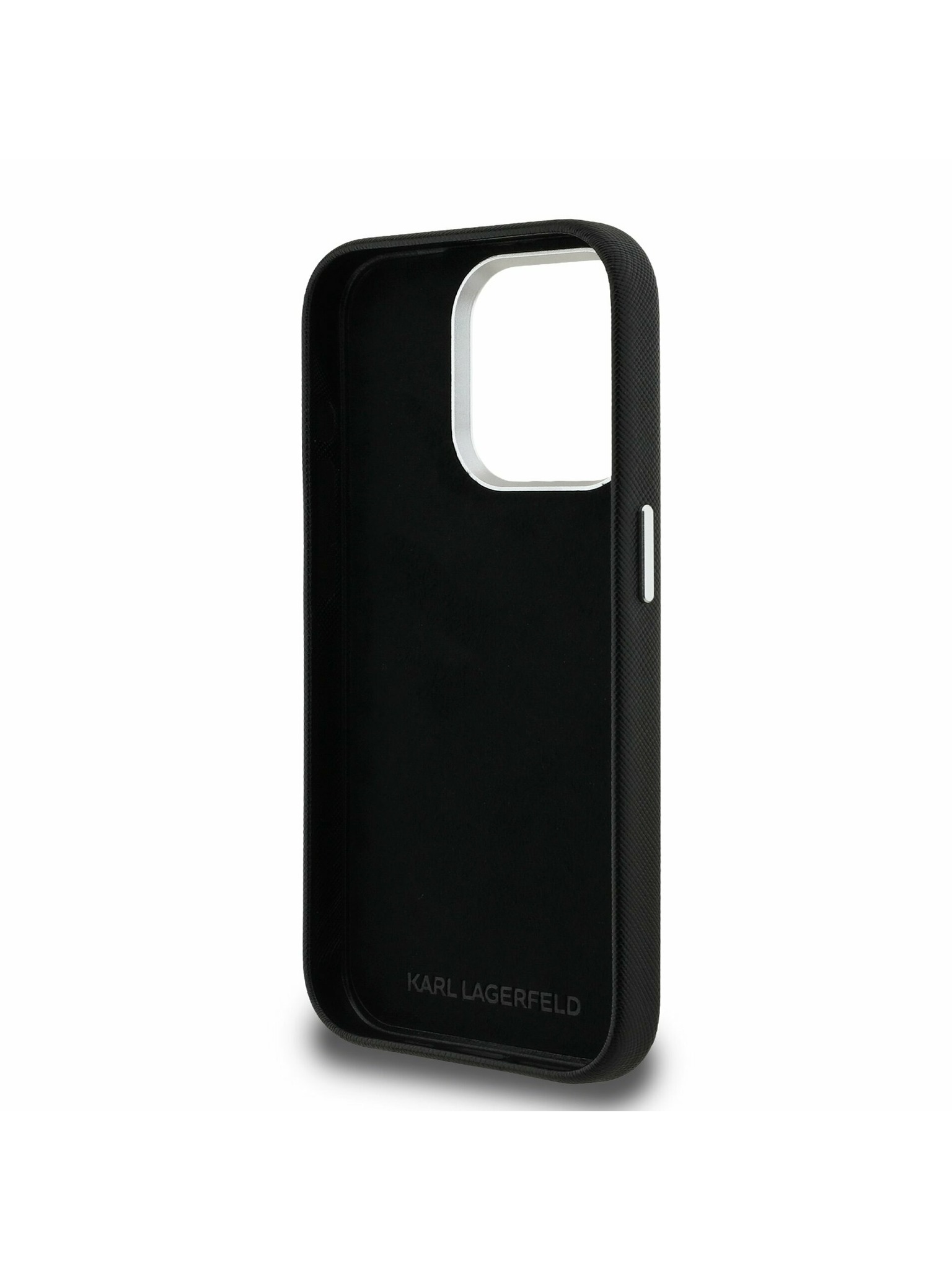 Karl Lagerfeld Релефна Еко Кожа K&CH Глави Заден Капак за iPhone 16 Pro Max - Черен