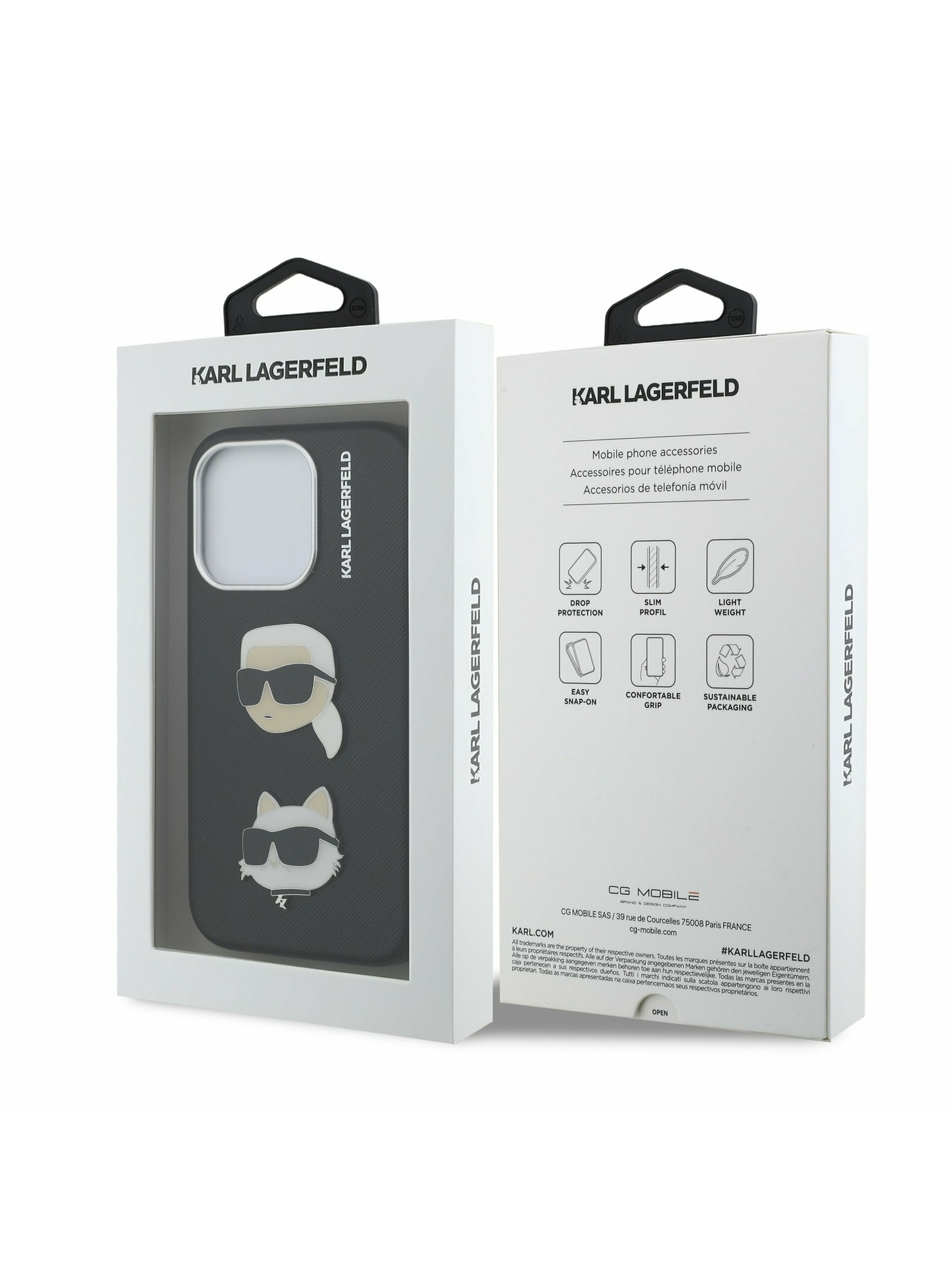 Karl Lagerfeld IML Акварел Karl и Choupette Заден Капак за iPhone 15 Pro - Черен
