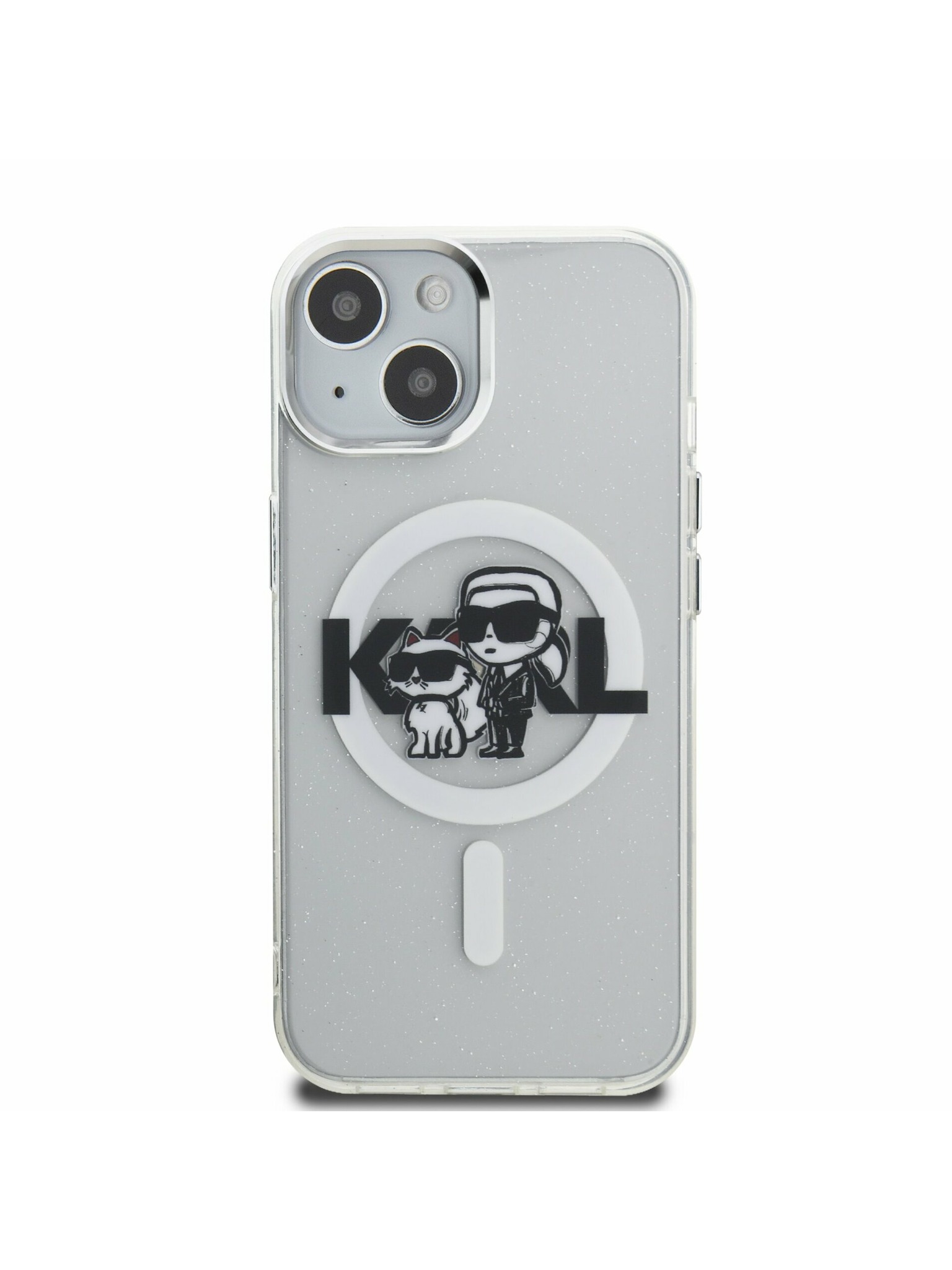 Karl Lagerfeld IML Брокат Карл и Шупет Скица MagSafe Заден Капак за iPhone 16 Прозрачен