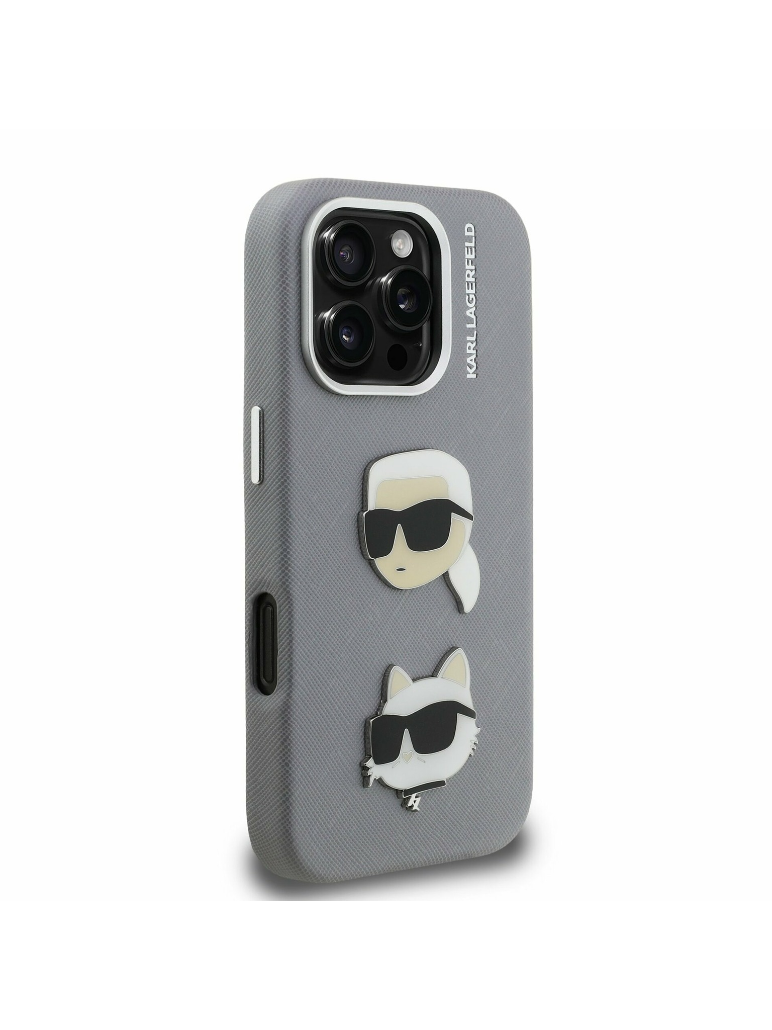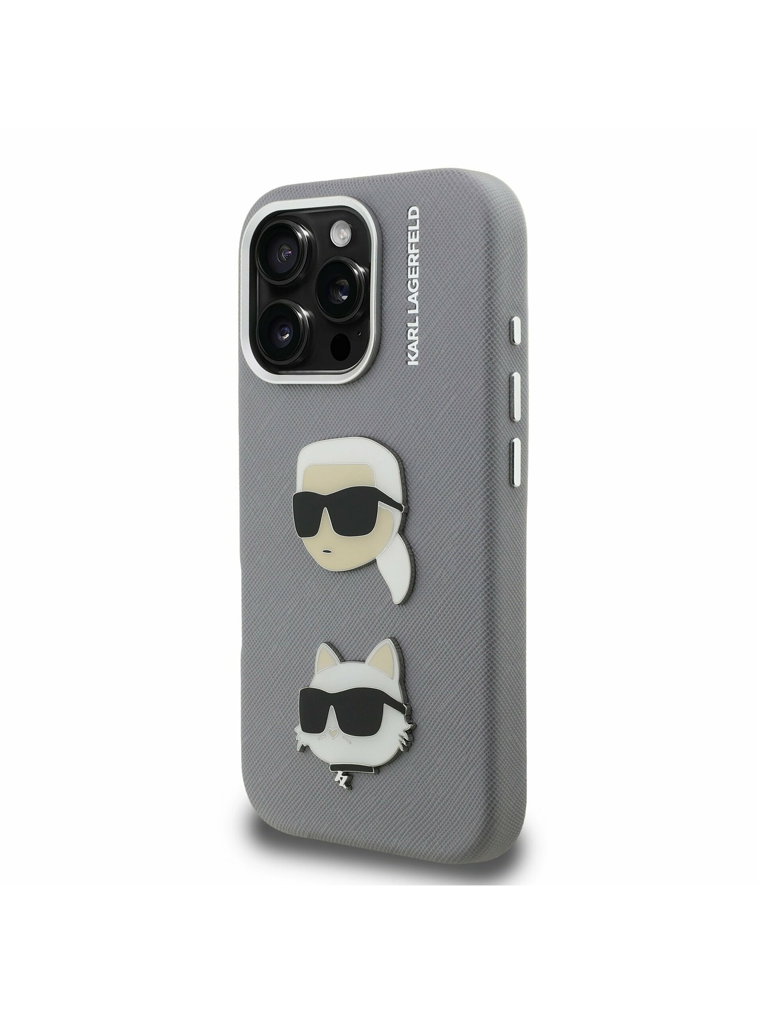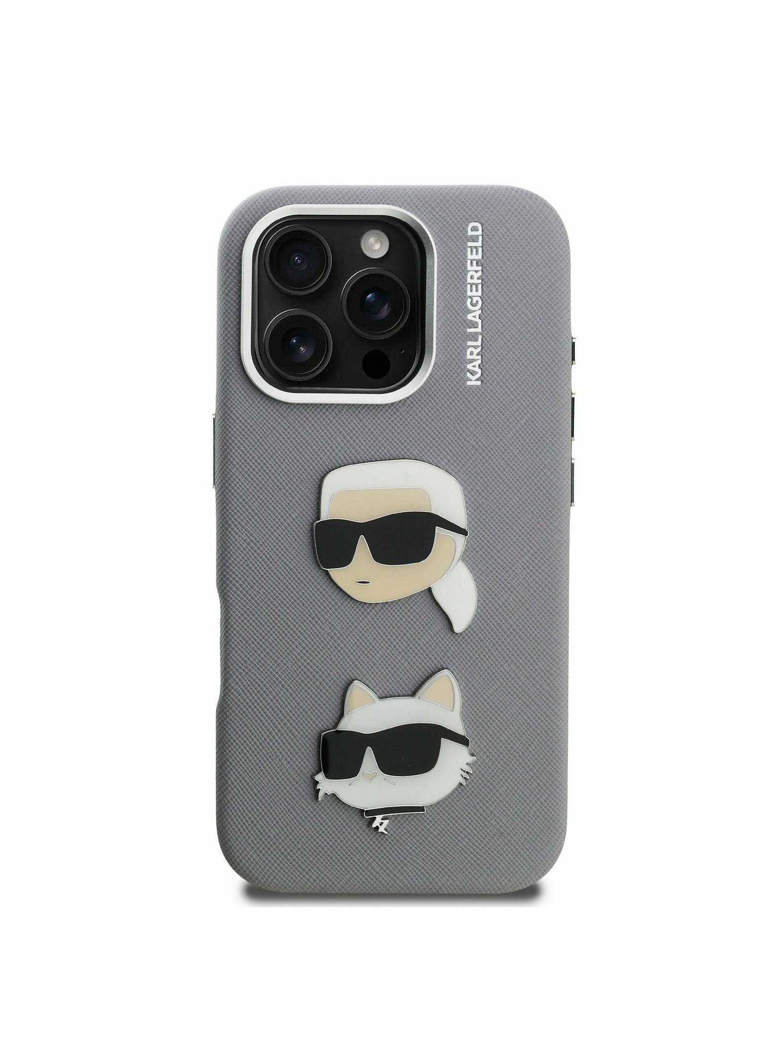 Karl Lagerfeld Grained PU K&CH Heads Заден калъф за iPhone 15 Pro Grey