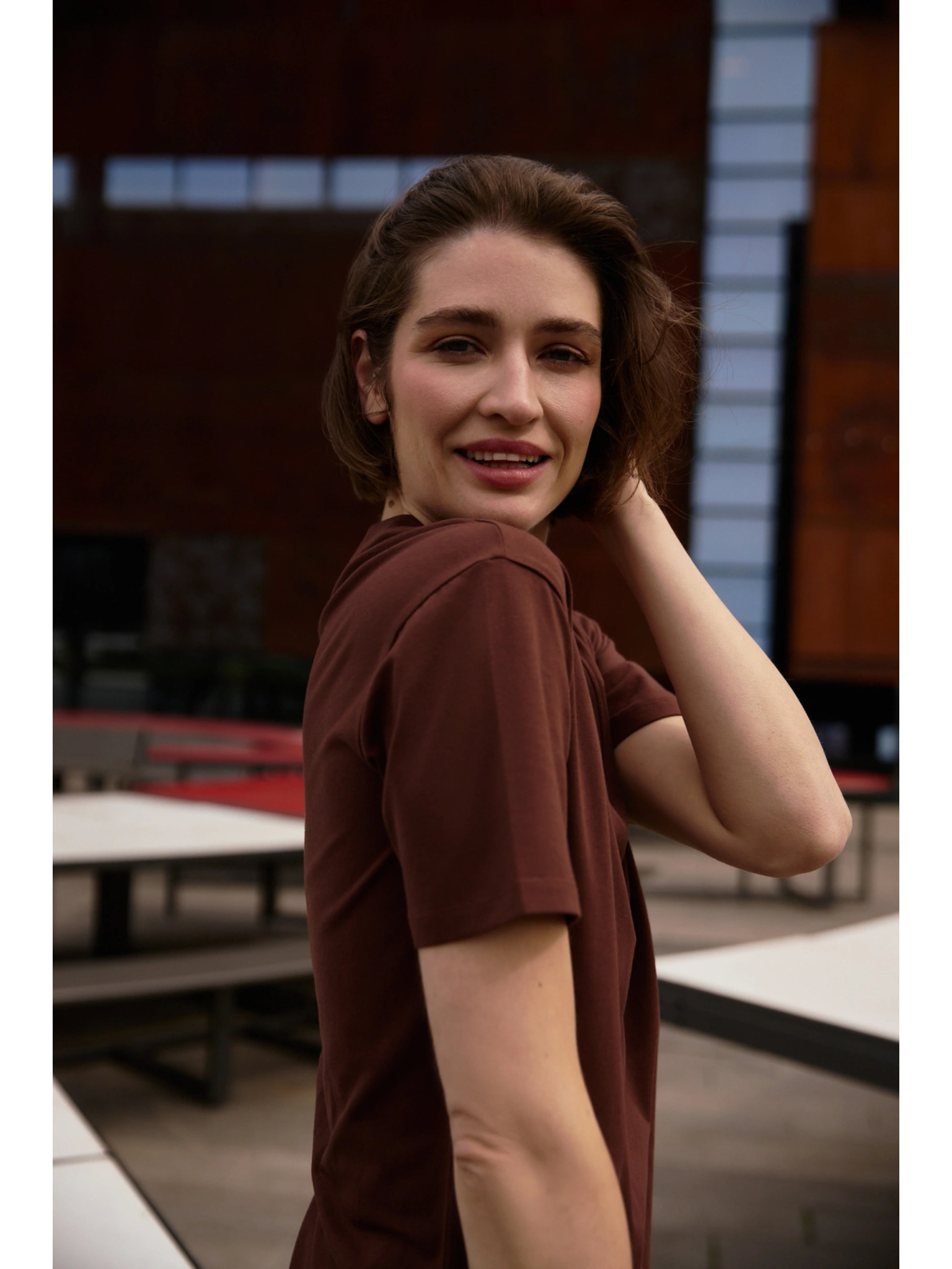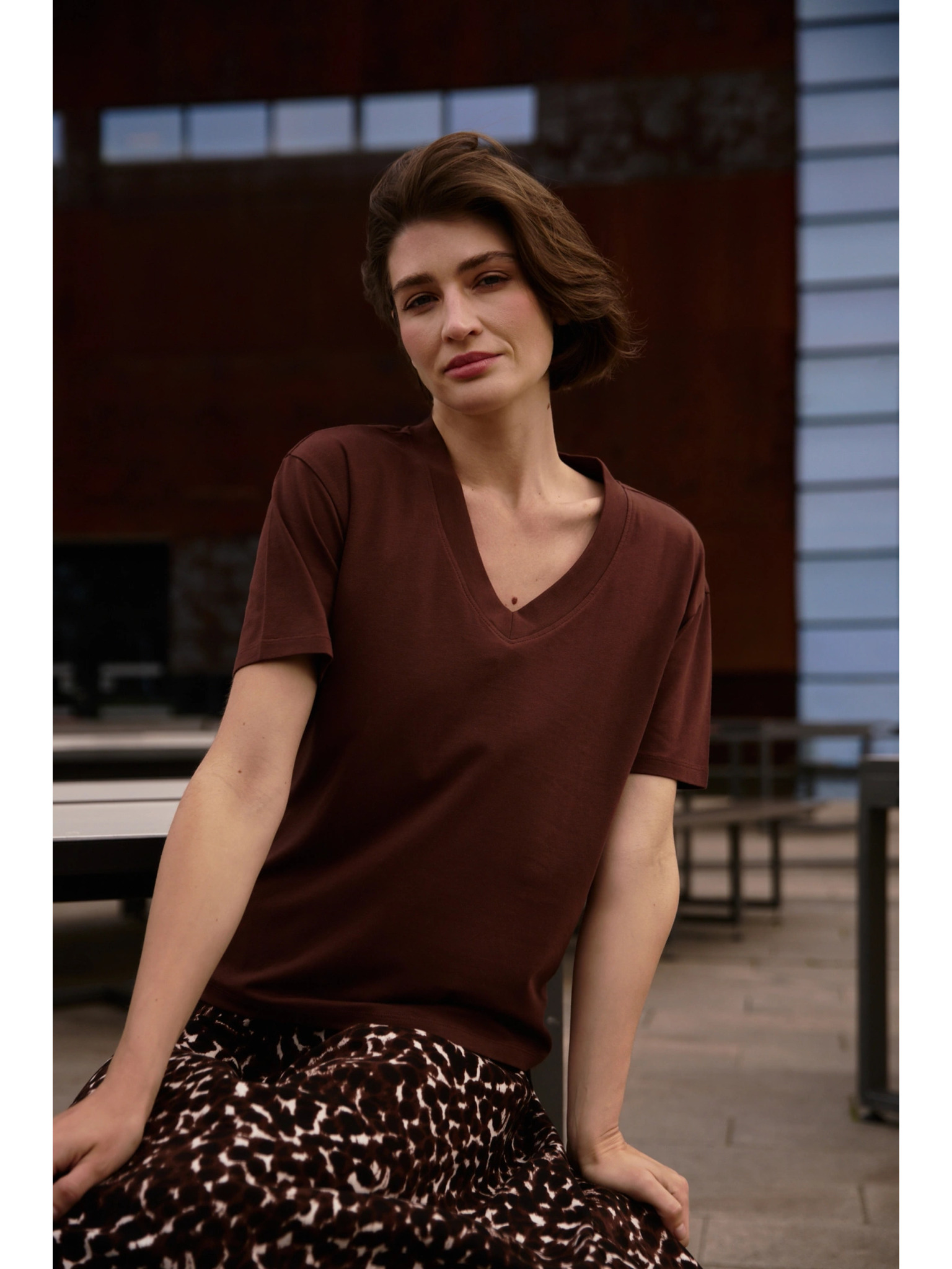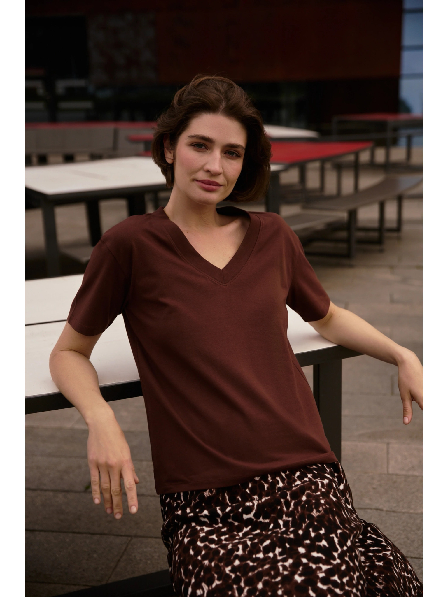 Тъмнoкафява дамска тениска с къс ръкав ORSAY