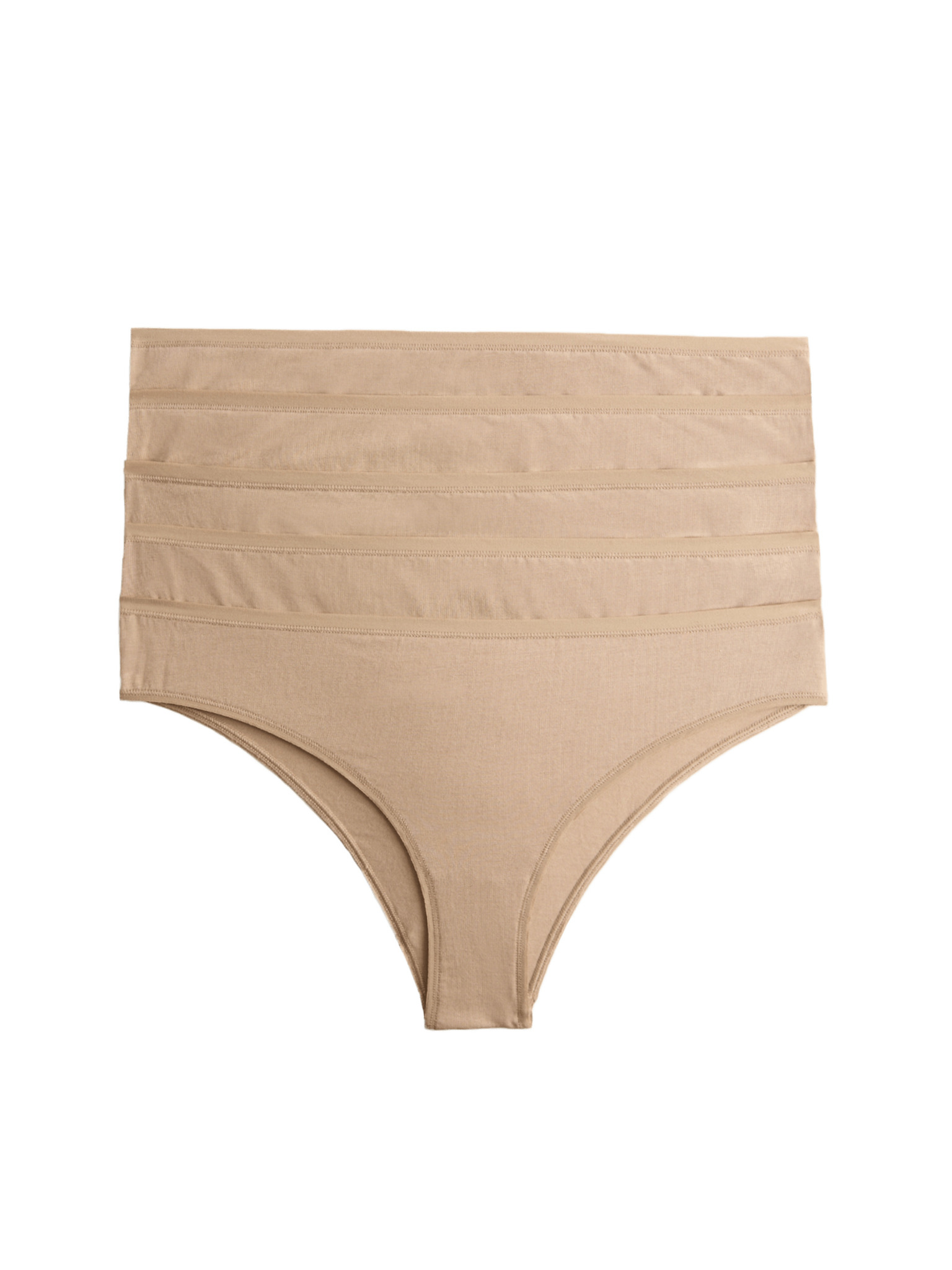 Памучни бикини с висока талия, 3 броя Marks & Spencer бежови