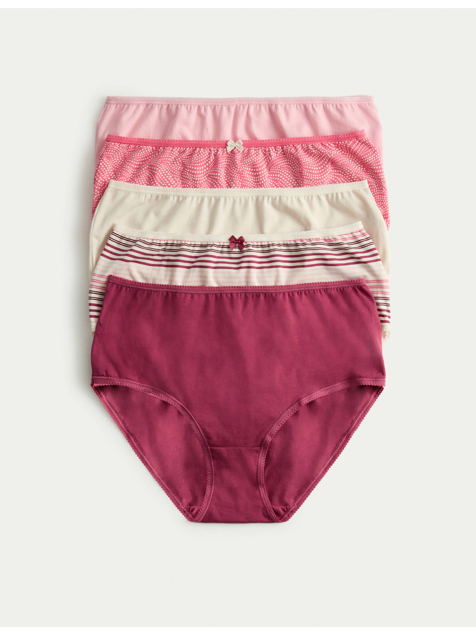 Дантелени бикини от памук Lycra™ с щампа, 5 бр. Marks & Spencer розов