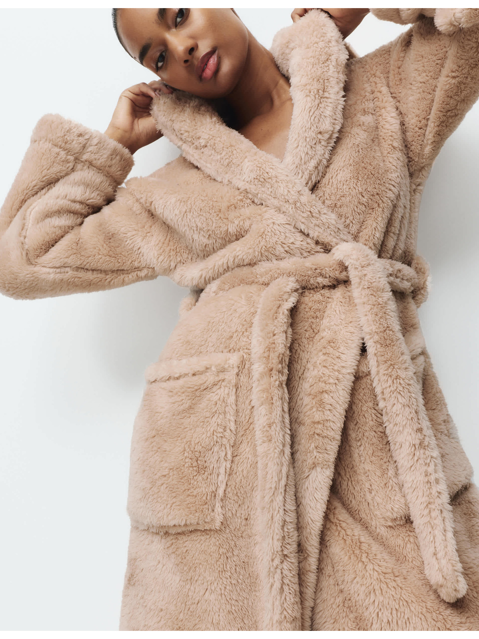 Халат с качулка Marks & Spencer кремав