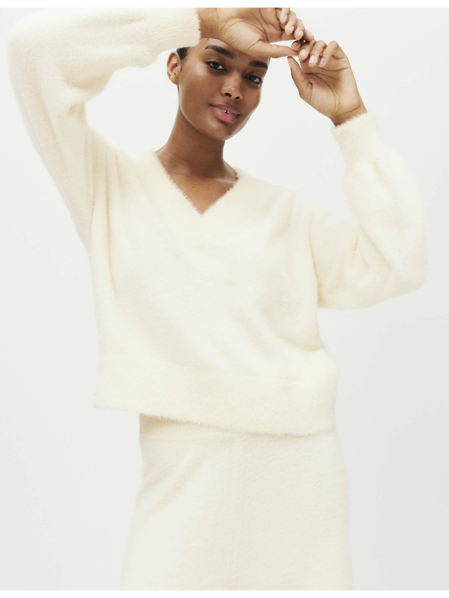 Ребрест пижамен топ с деколте при врата и дълги ръкави Marks & Spencer cremav