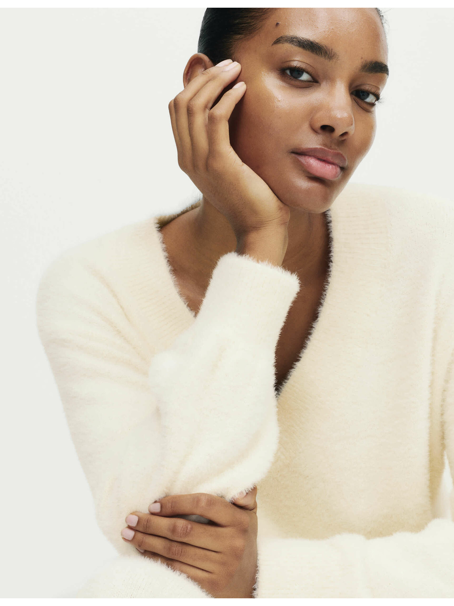 Запакован кардиган от изкуствена кожа с мече Marks & Spencer кремав