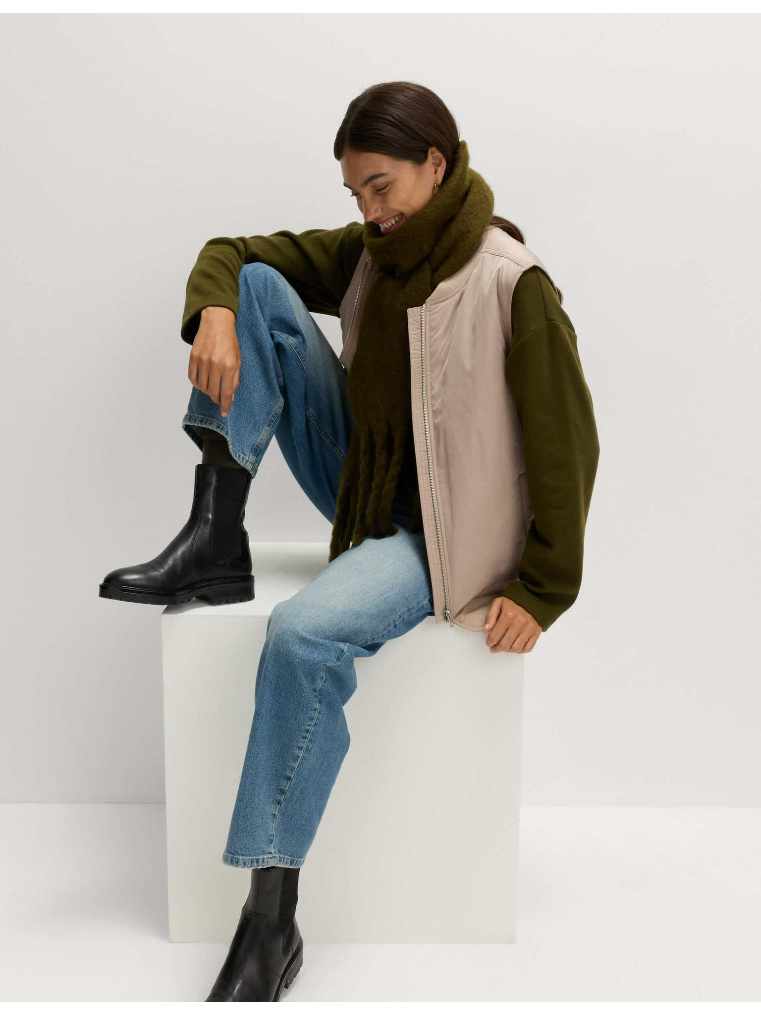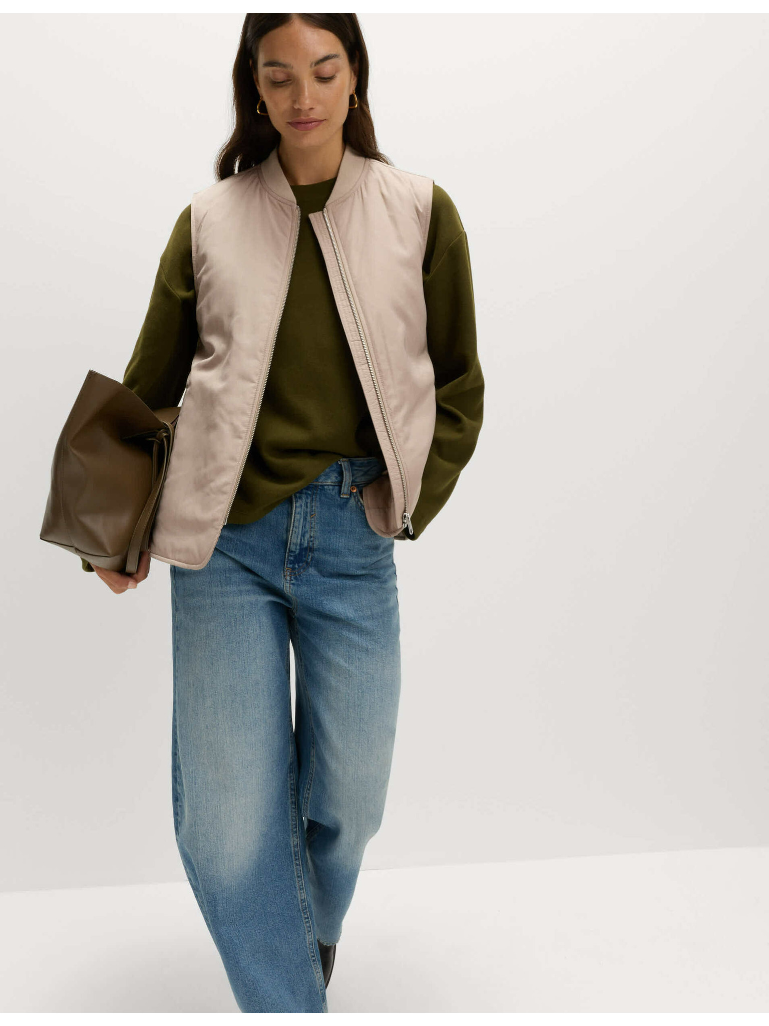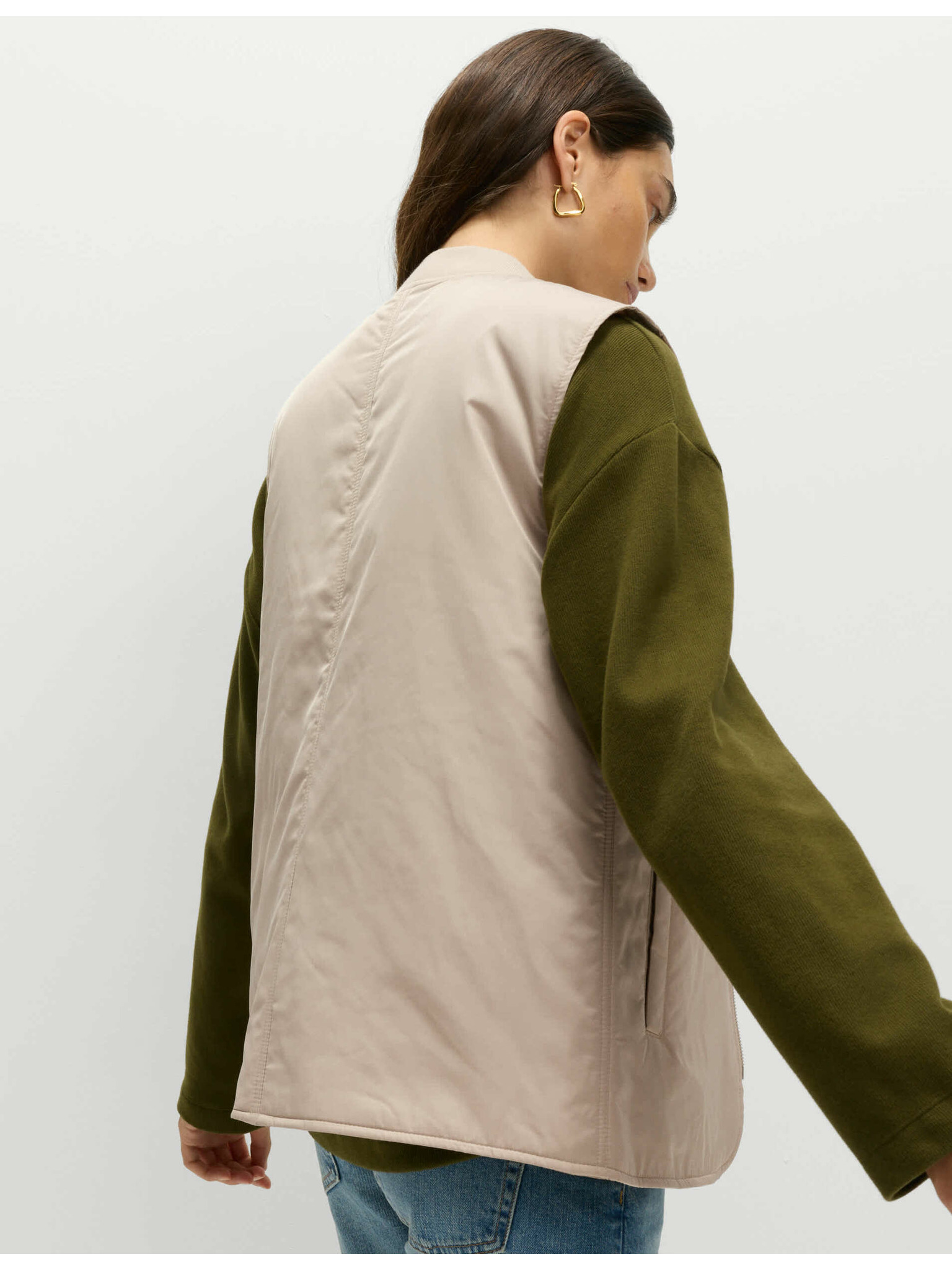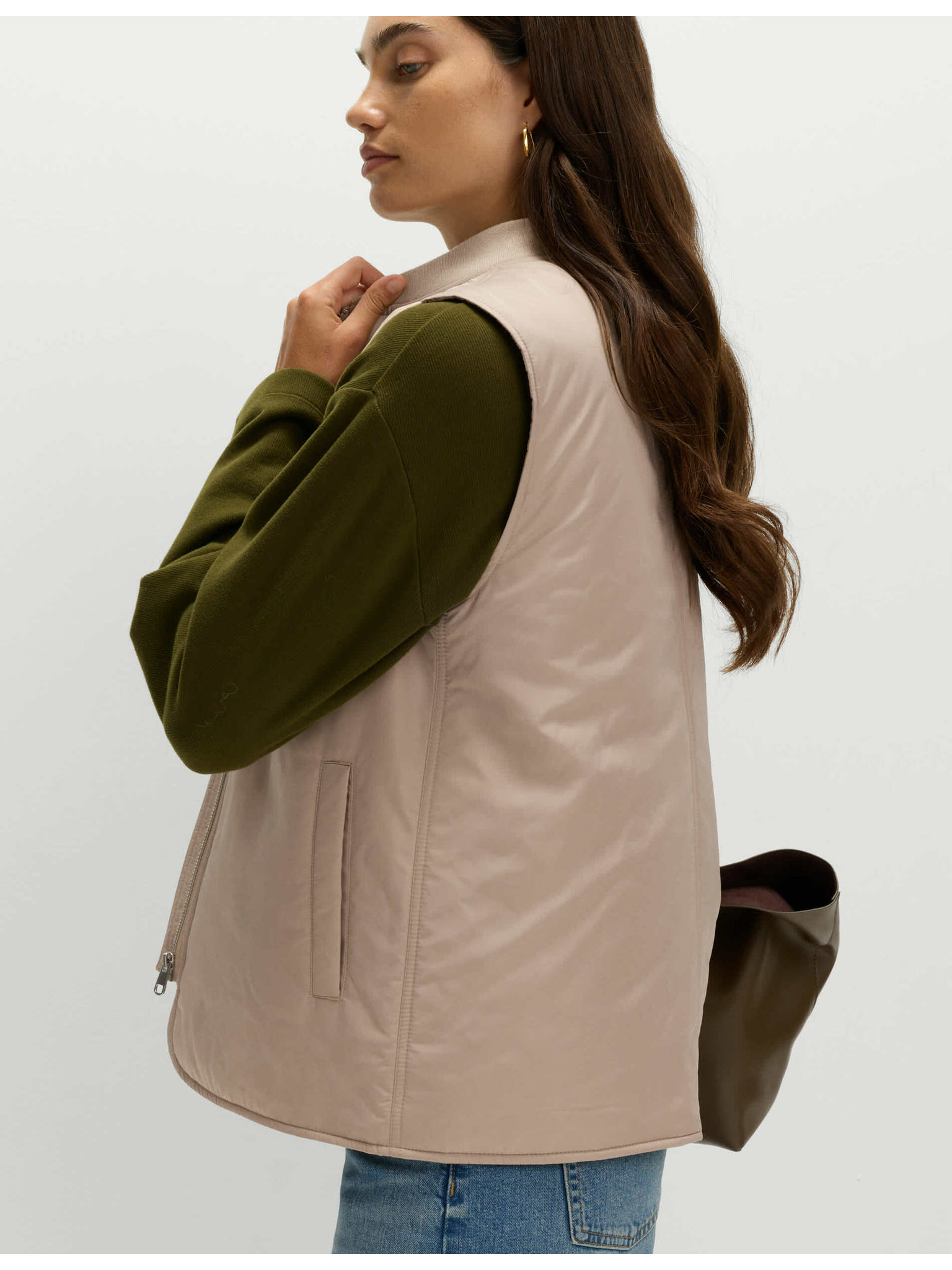 Бежов дамски дълъг ватиран елек ORSAY