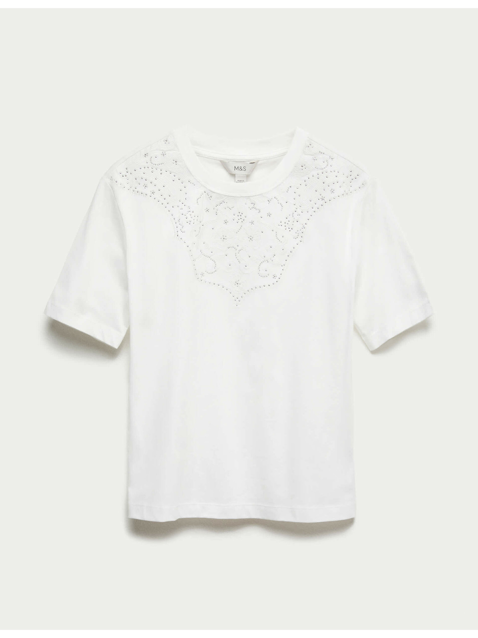 Раирана тениска с овален деколте, с висок дял памук Marks & Spencer бяла