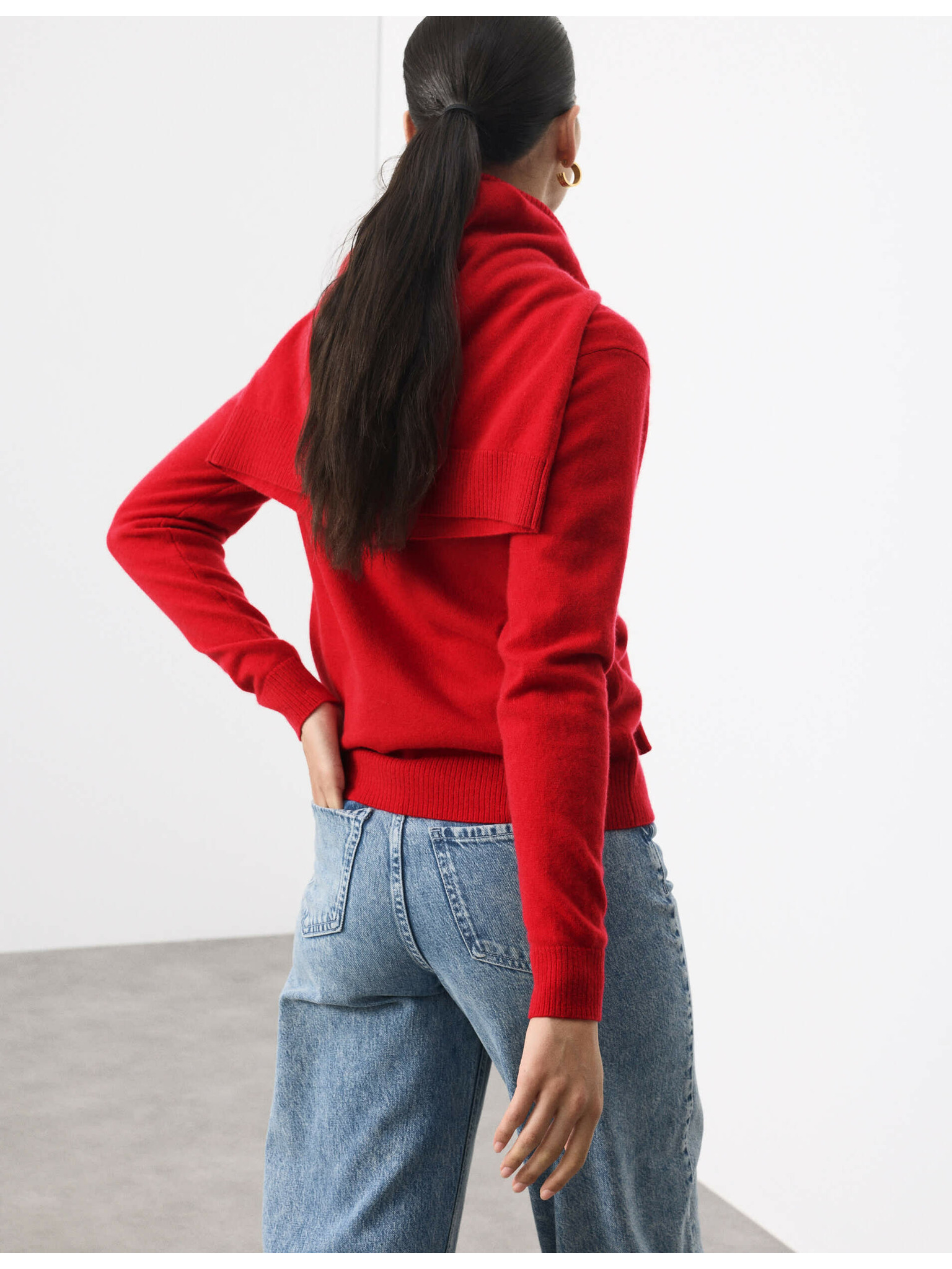 Суитшърт от чист кашмир с поло яка Marks & Spencer червен