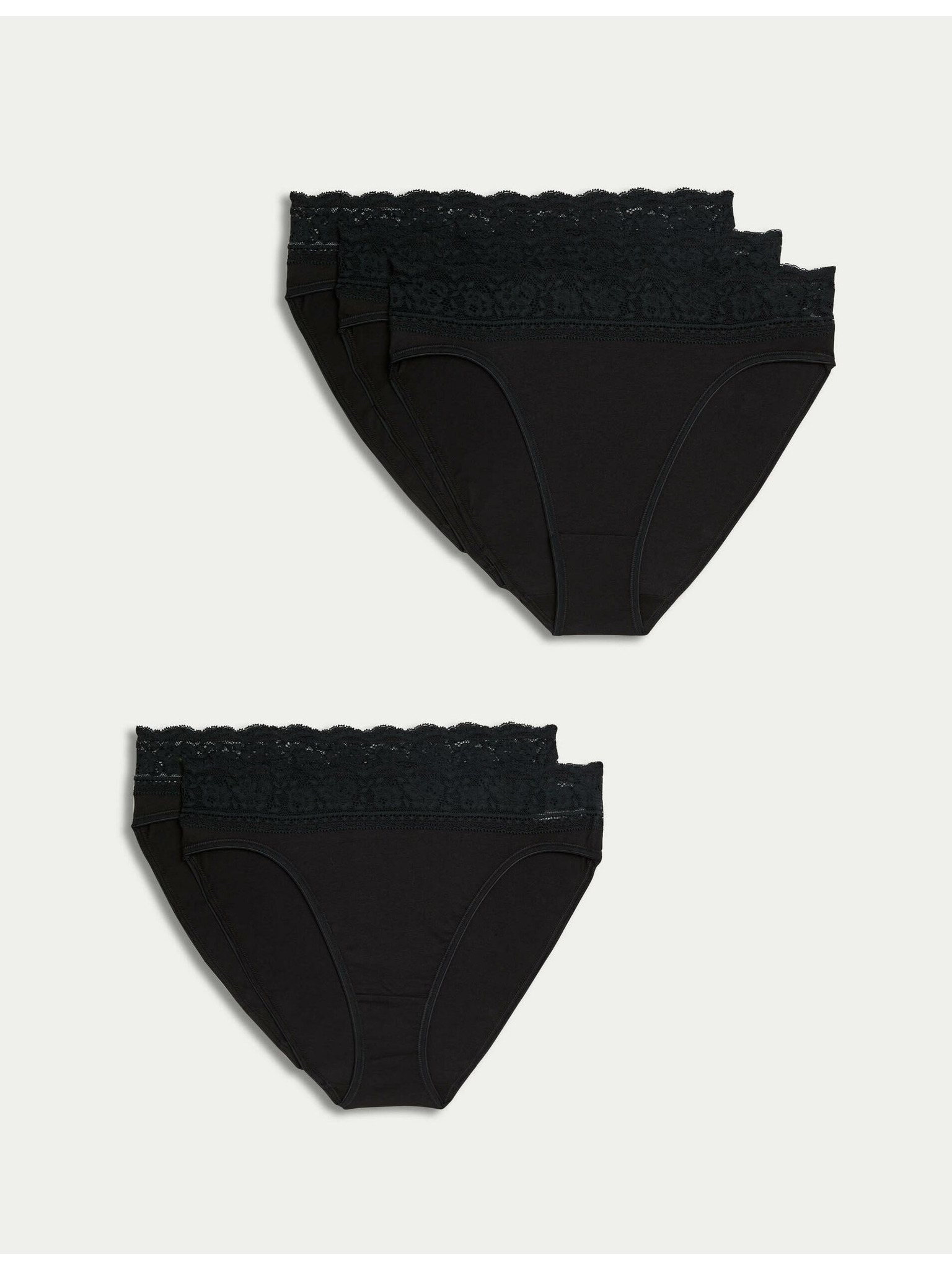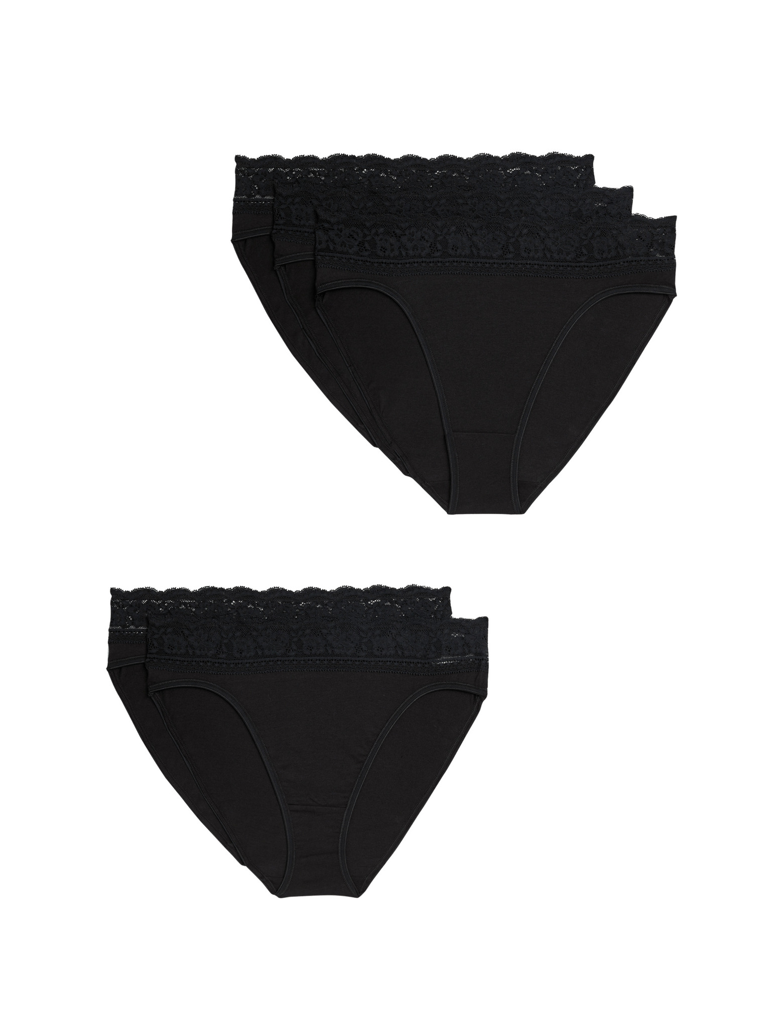 Бразилски бикини с дантелен ръб, 3 бр. в опаковка Marks & Spencer черна