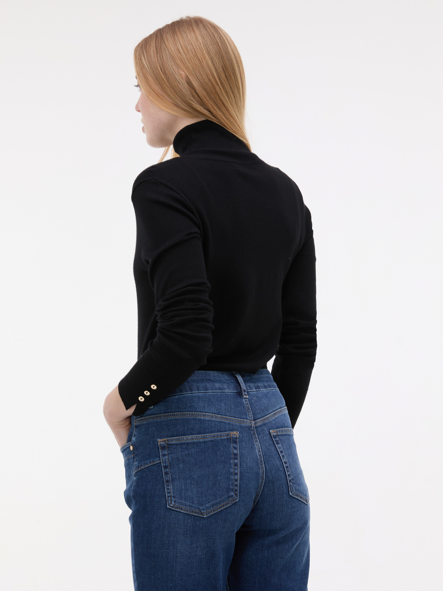 Бял дамски рипсен пуловер с декоративни копчета ORSAY