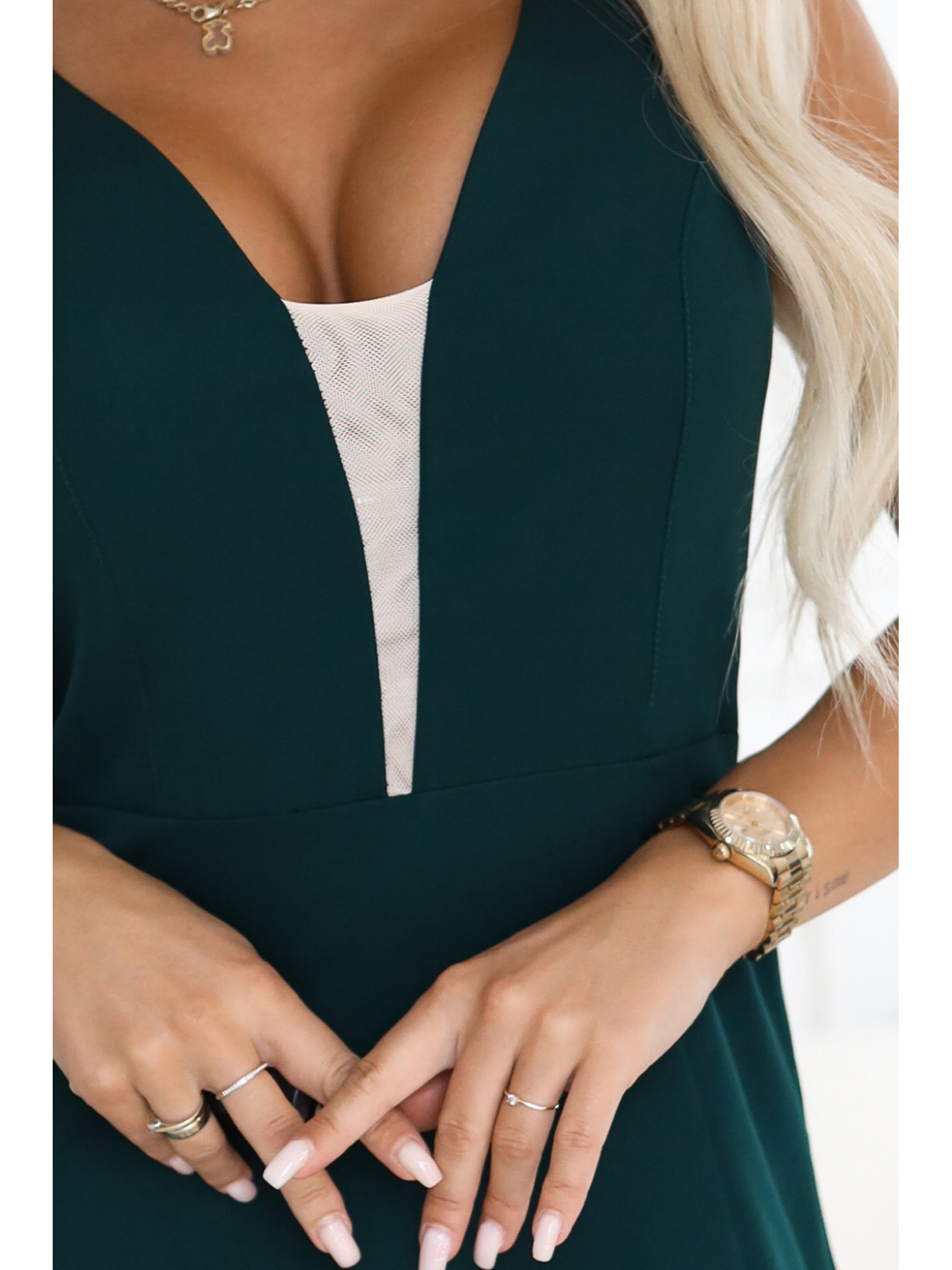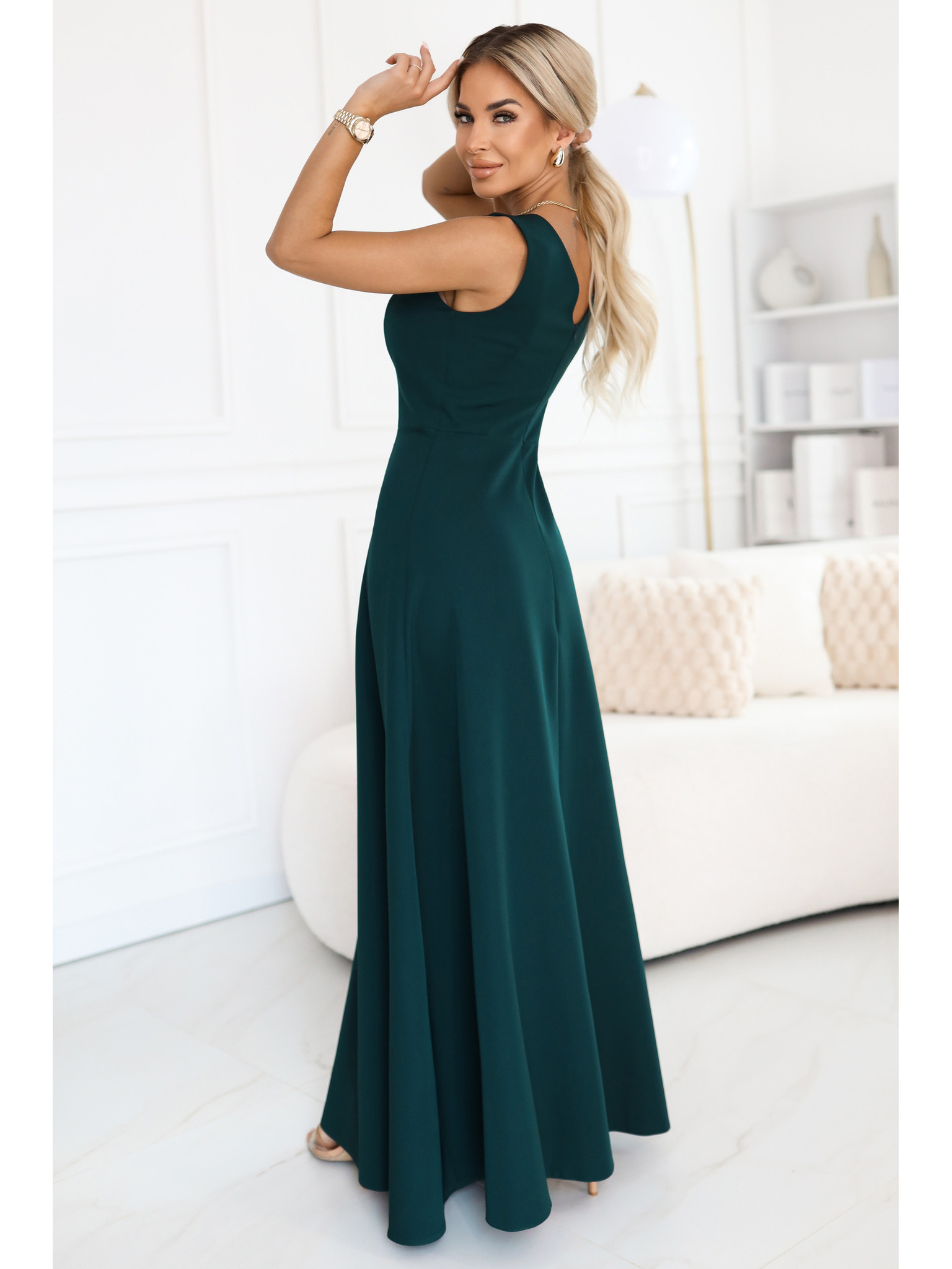 AURELIA дълги рокли с цепка при крачола и диамантено деколте - тъмнозелени