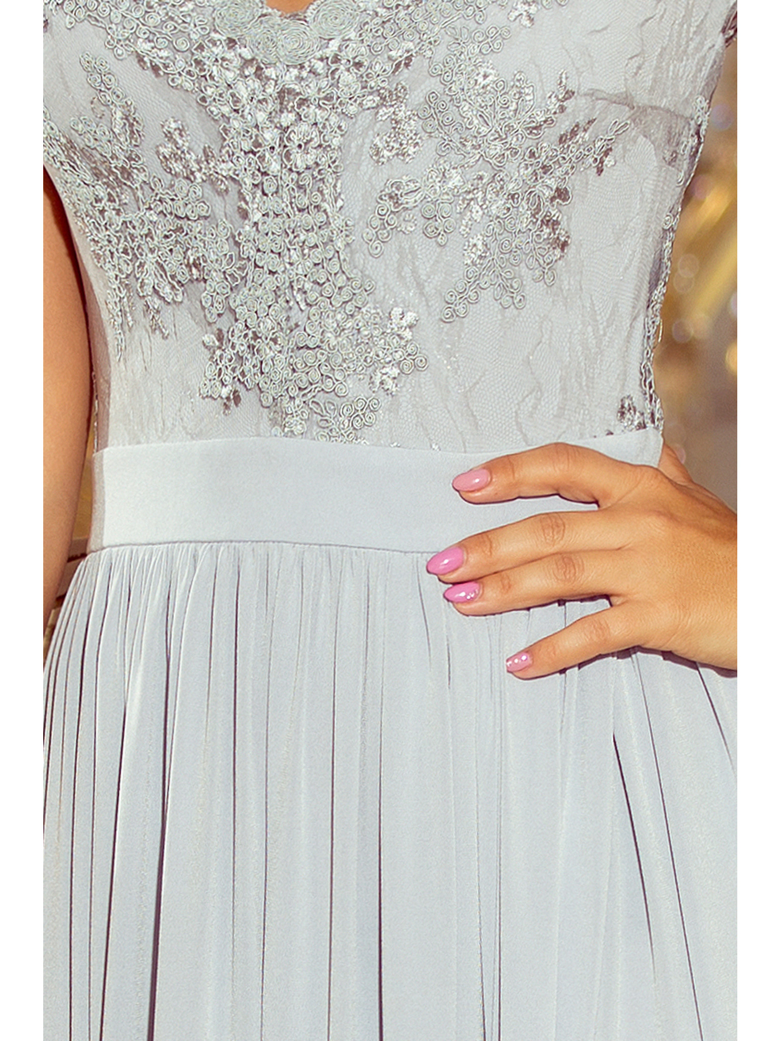 Дълги рокли с нежен блясък и корсетно закопчаване отзад - зелени със сребристи елементи